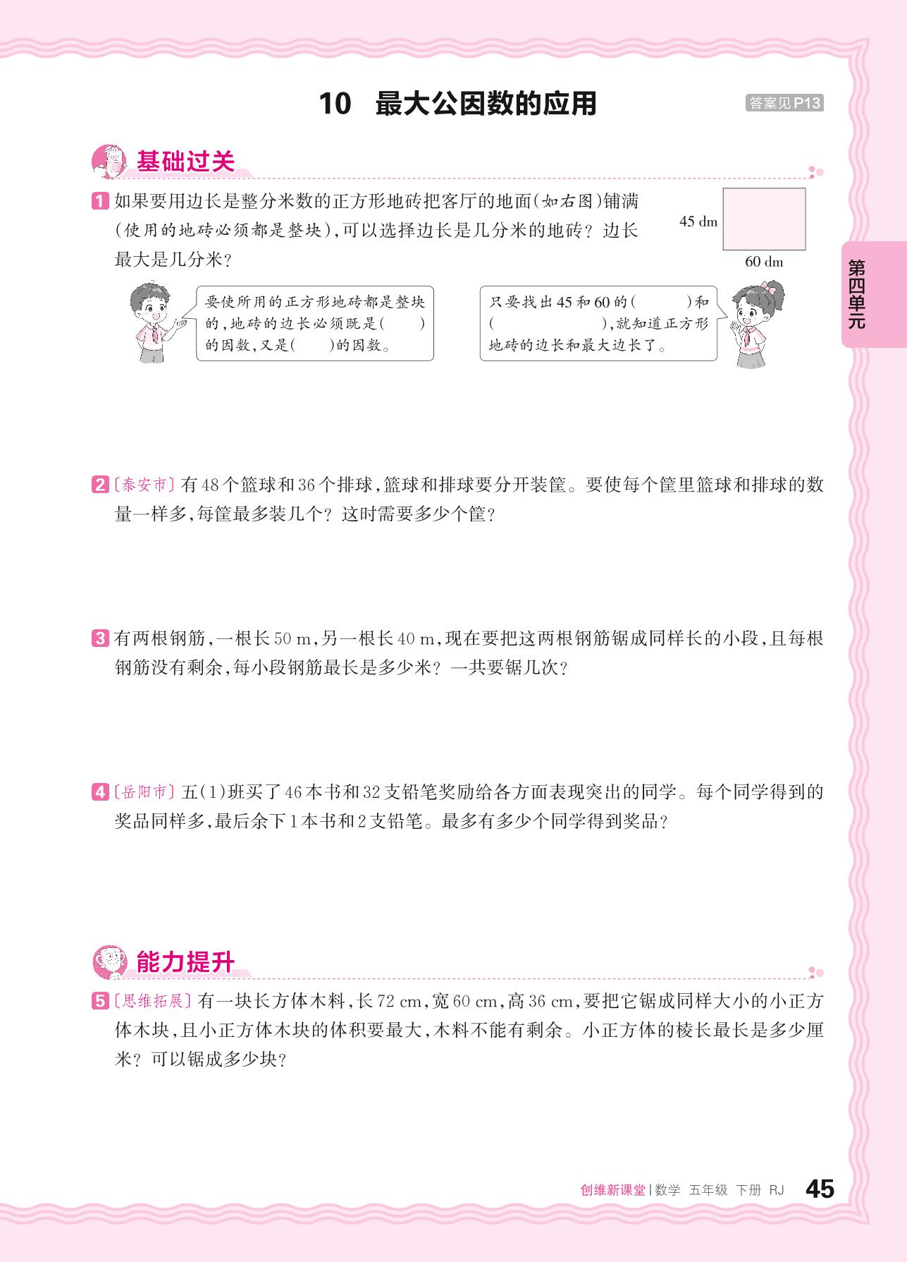 2024春下册五年级数学人教版 第四单元 分数的意义和性质——10. 最大公因数的应用