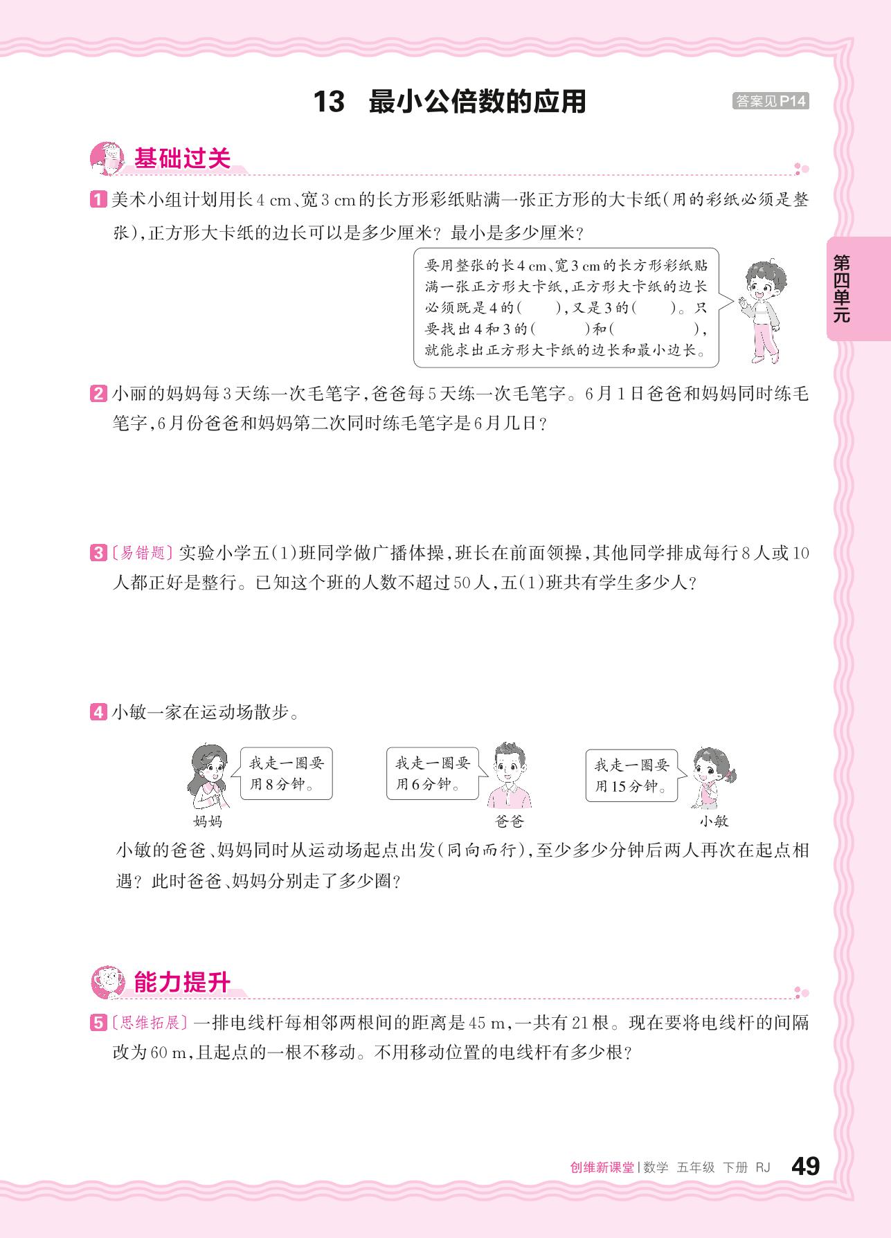 2024春下册五年级数学人教版 第四单元 分数的意义和性质——13. 最小公倍数的应用