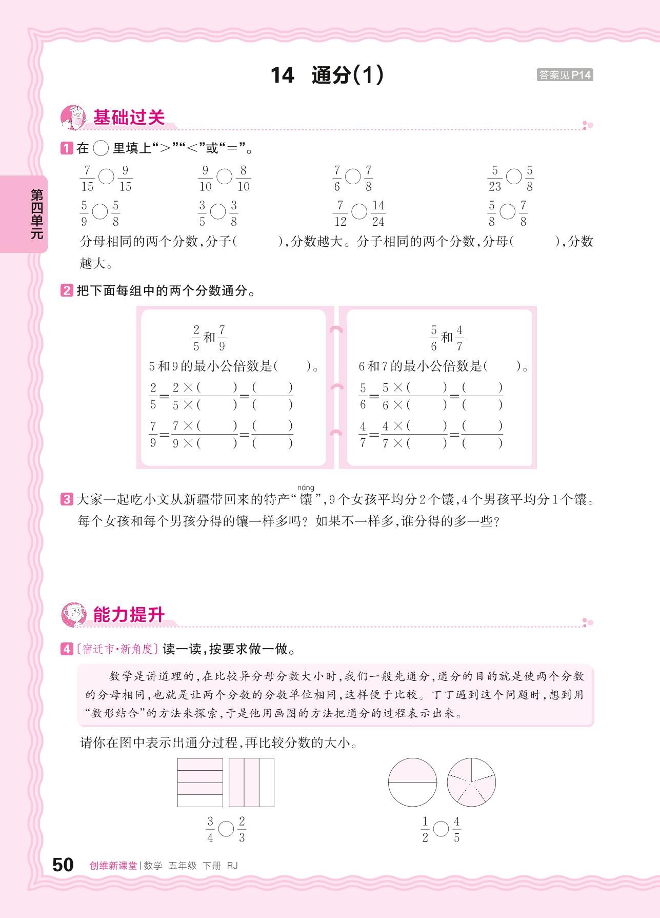 2024春下册五年级数学人教版 第四单元 分数的意义和性质——14. 通分(1)
