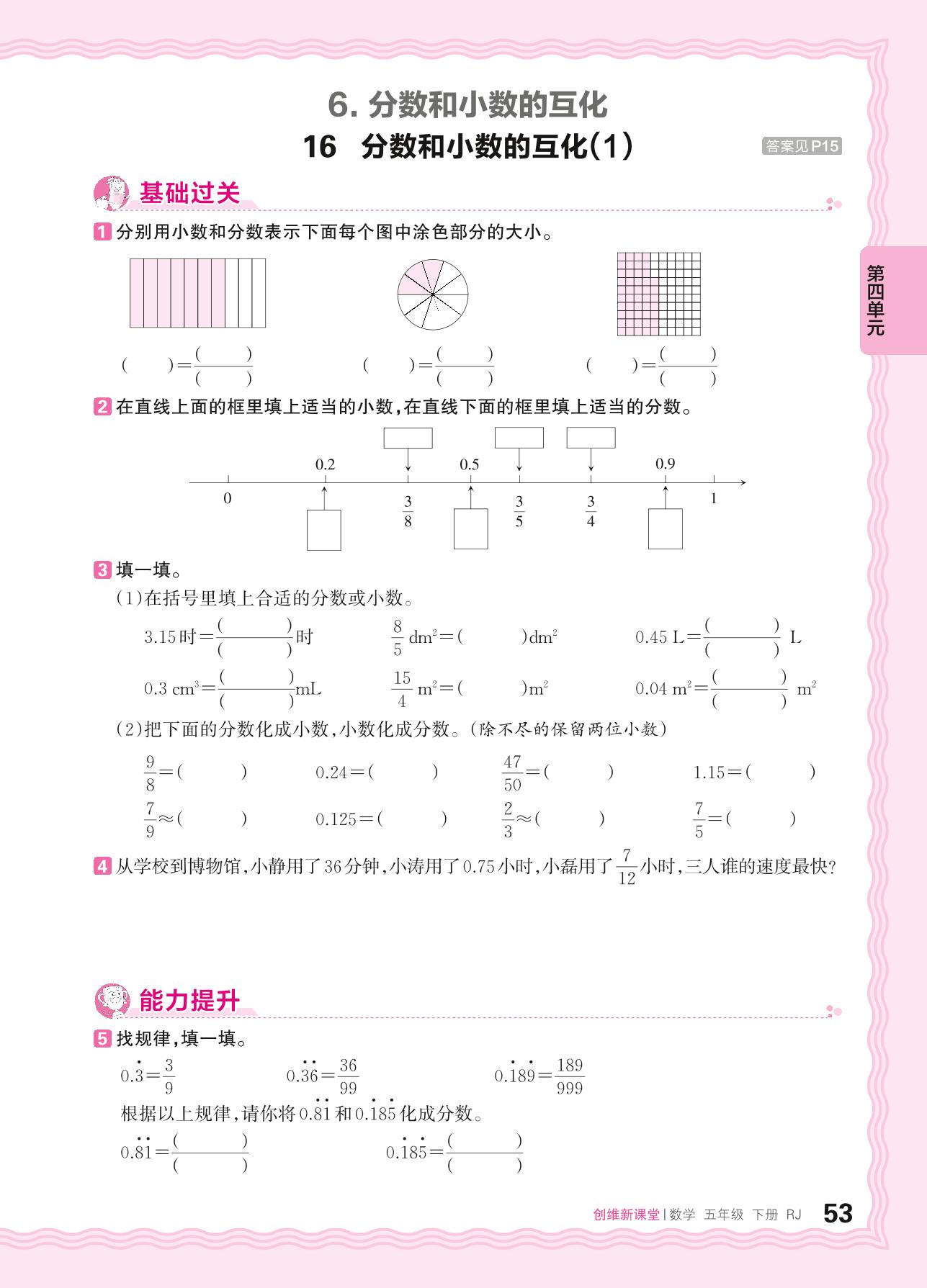 2024春下册五年级数学人教版 第四单元 分数的意义和性质——16. 分数和小数的互化(1)