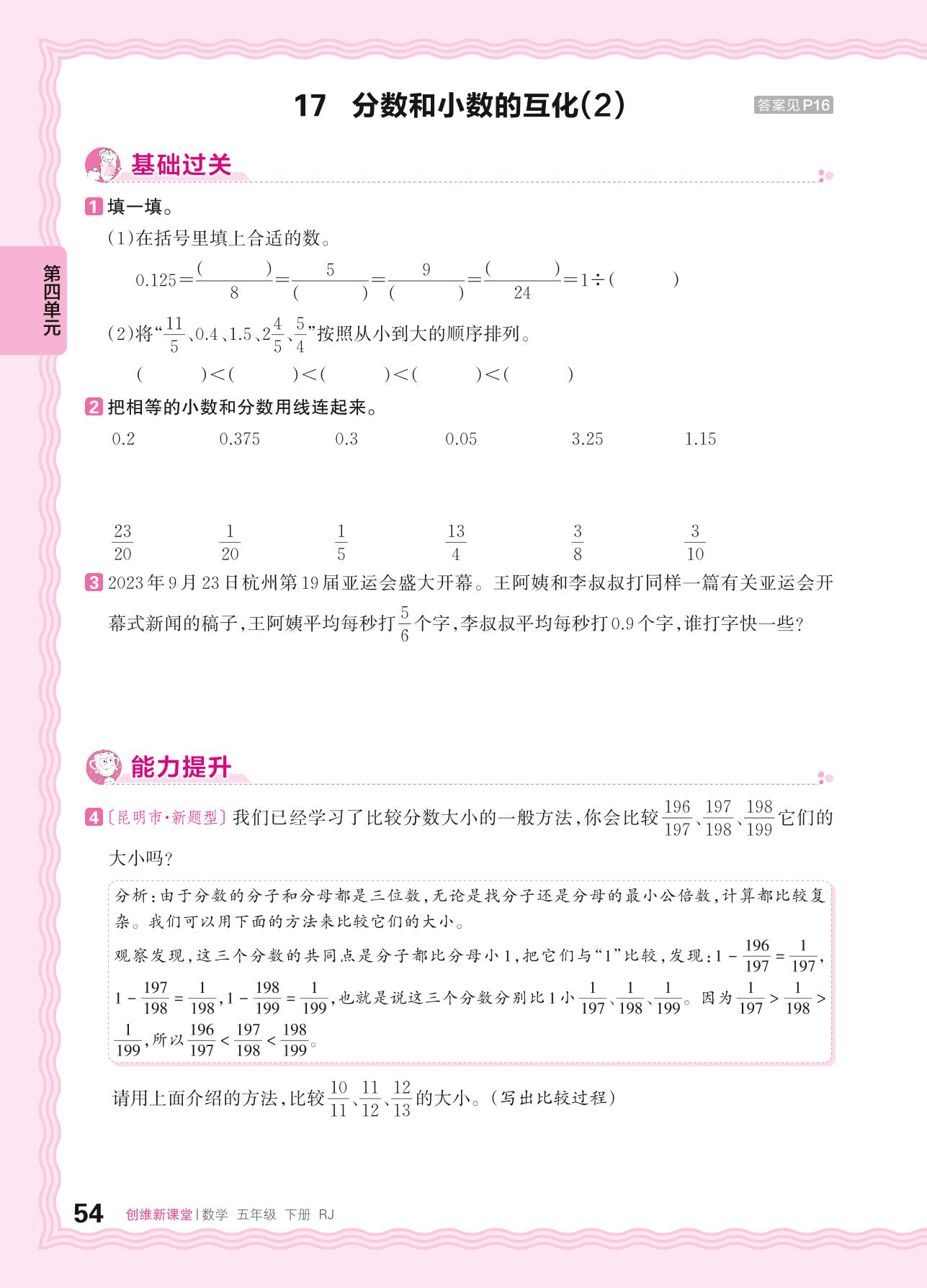 2024春下册五年级数学人教版 第四单元 分数的意义和性质——17. 分数和小数的互化(2)