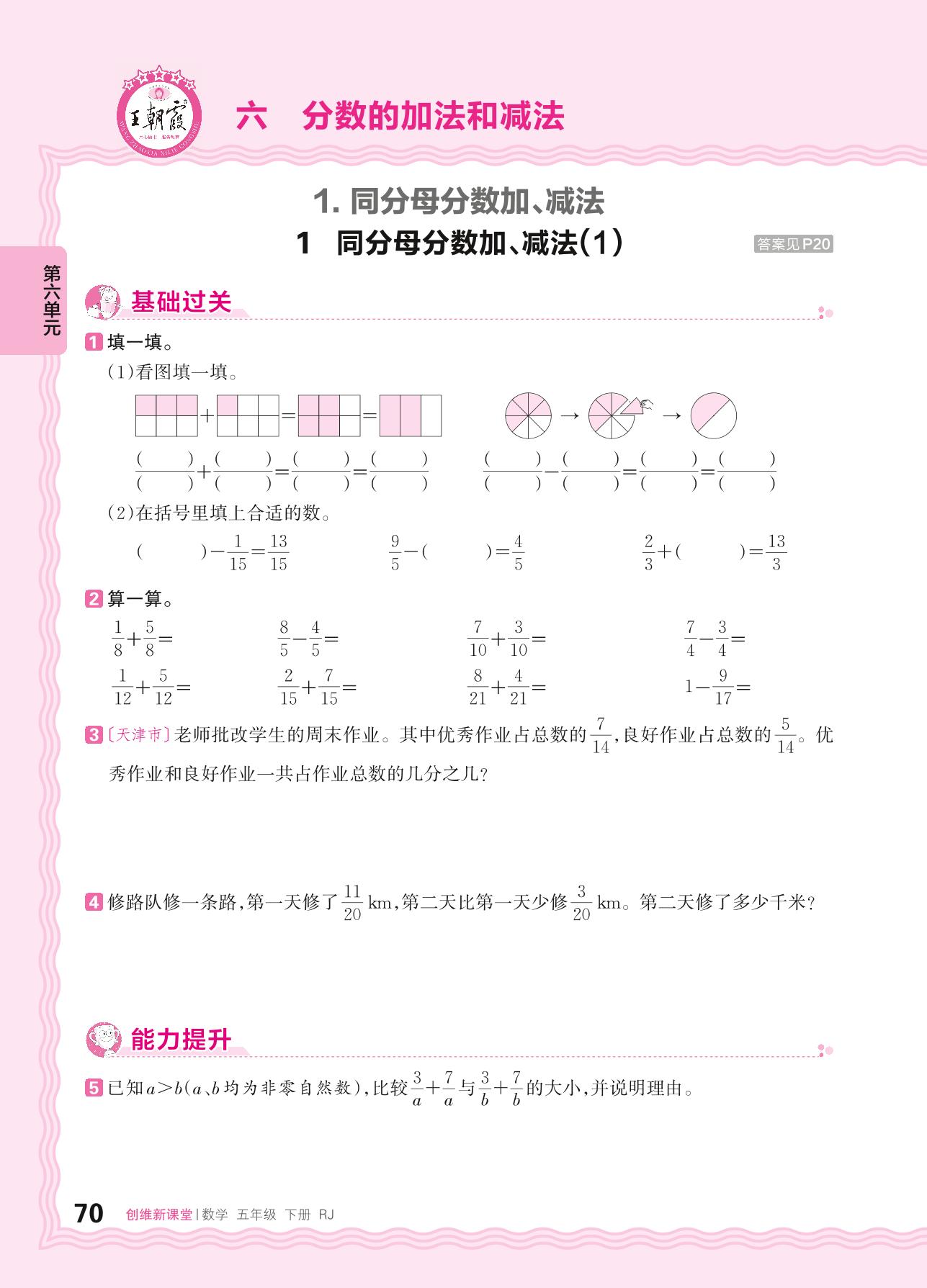 2024春下册五年级数学人教版 第六单元 分数的加法和减法——1. 同分母分数加、减法(1)_R240122180316159
