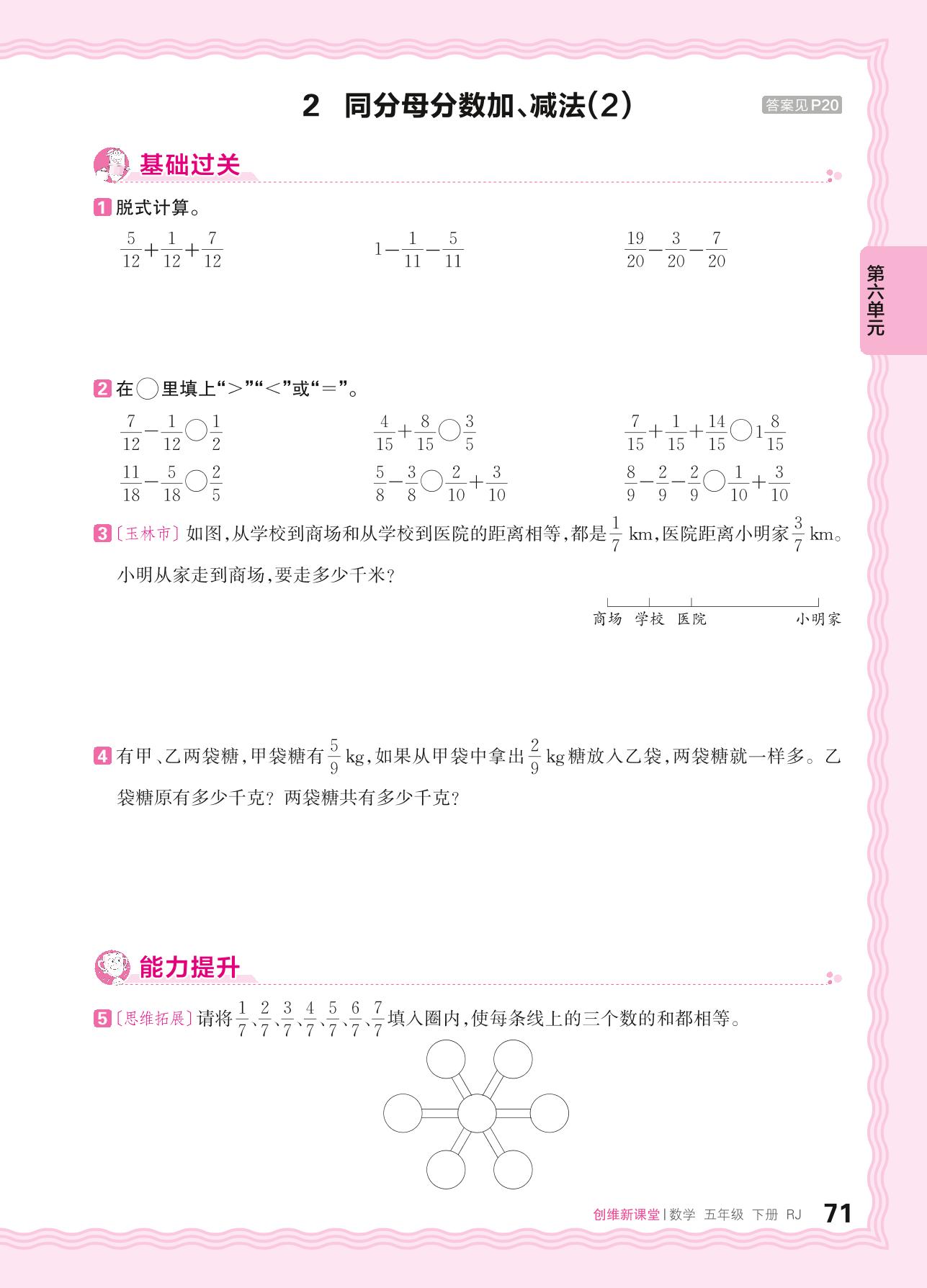 2024春下册五年级数学人教版 第六单元 分数的加法和减法——2. 同分母分数加、减法(2)_R240122180317109