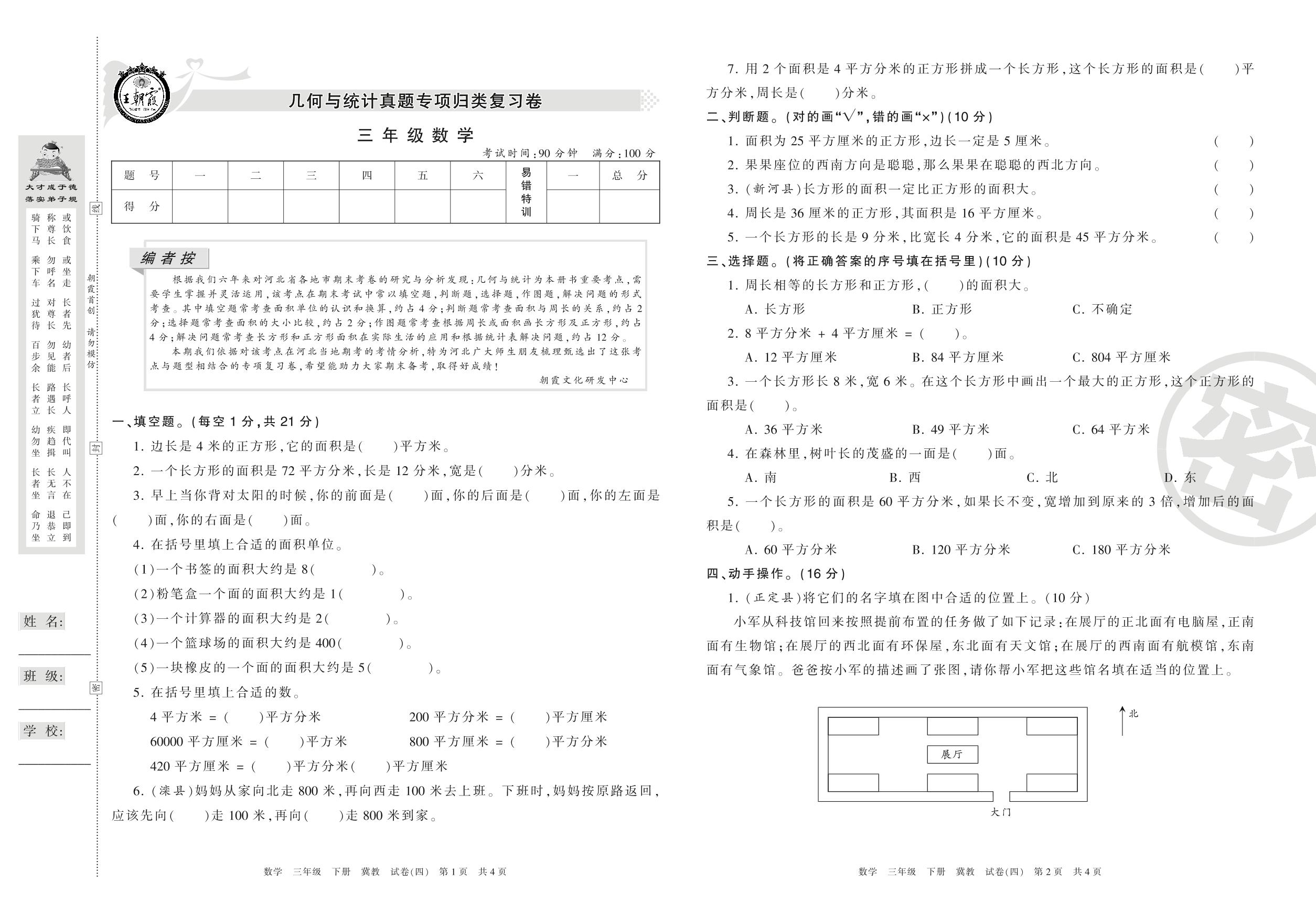 王朝霞期末专项卷三年级下册数学(冀教版)【4】