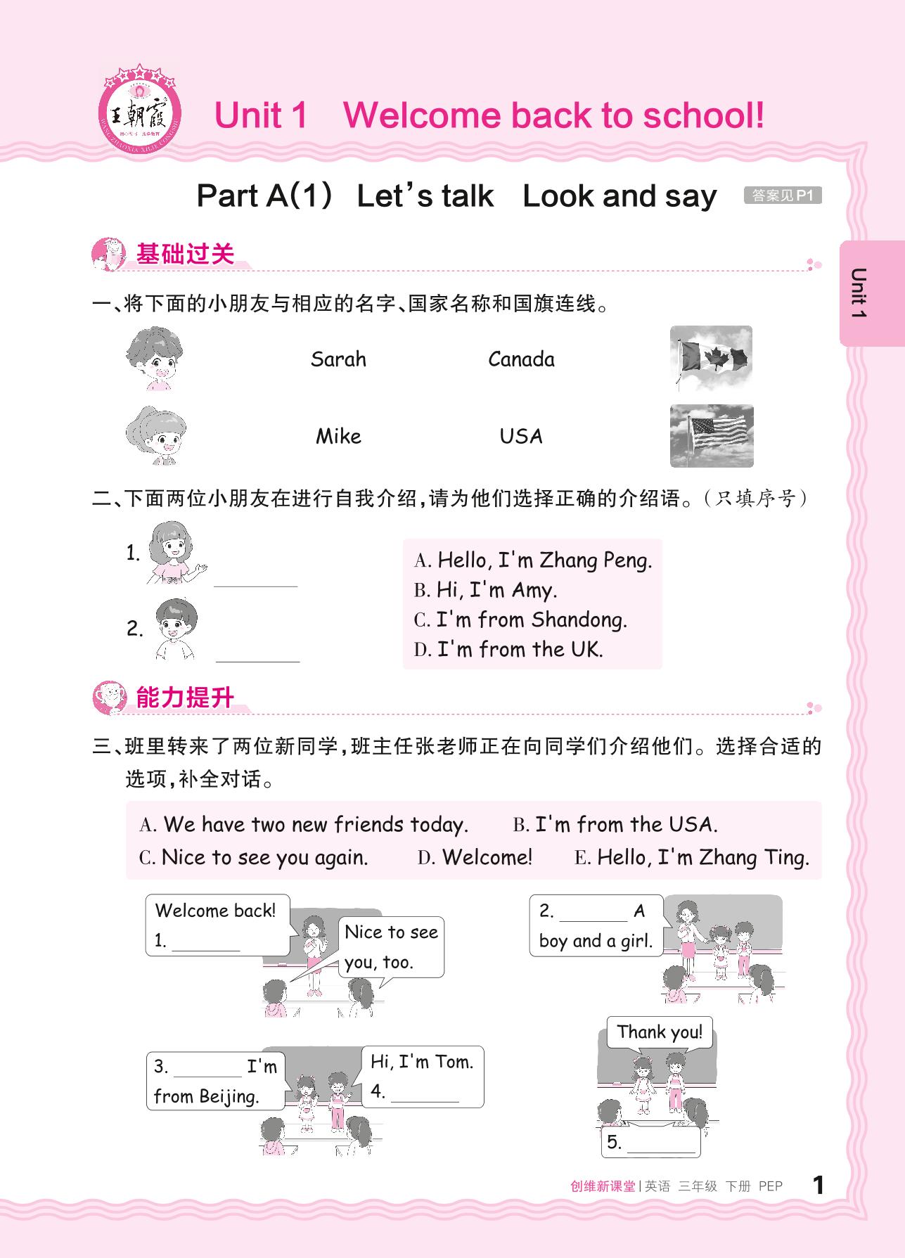 2024春下册三年级英语人教PEP版 Unit 1—Part A(1) Let’s talk Look and say
