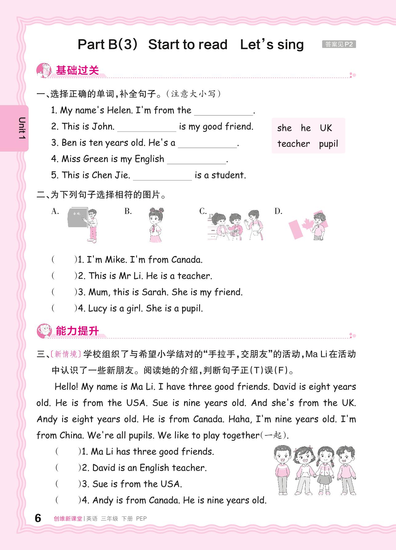 2024春下册三年级英语人教PEP版 Unit 1—Part B(3) Start to read Let’s sing