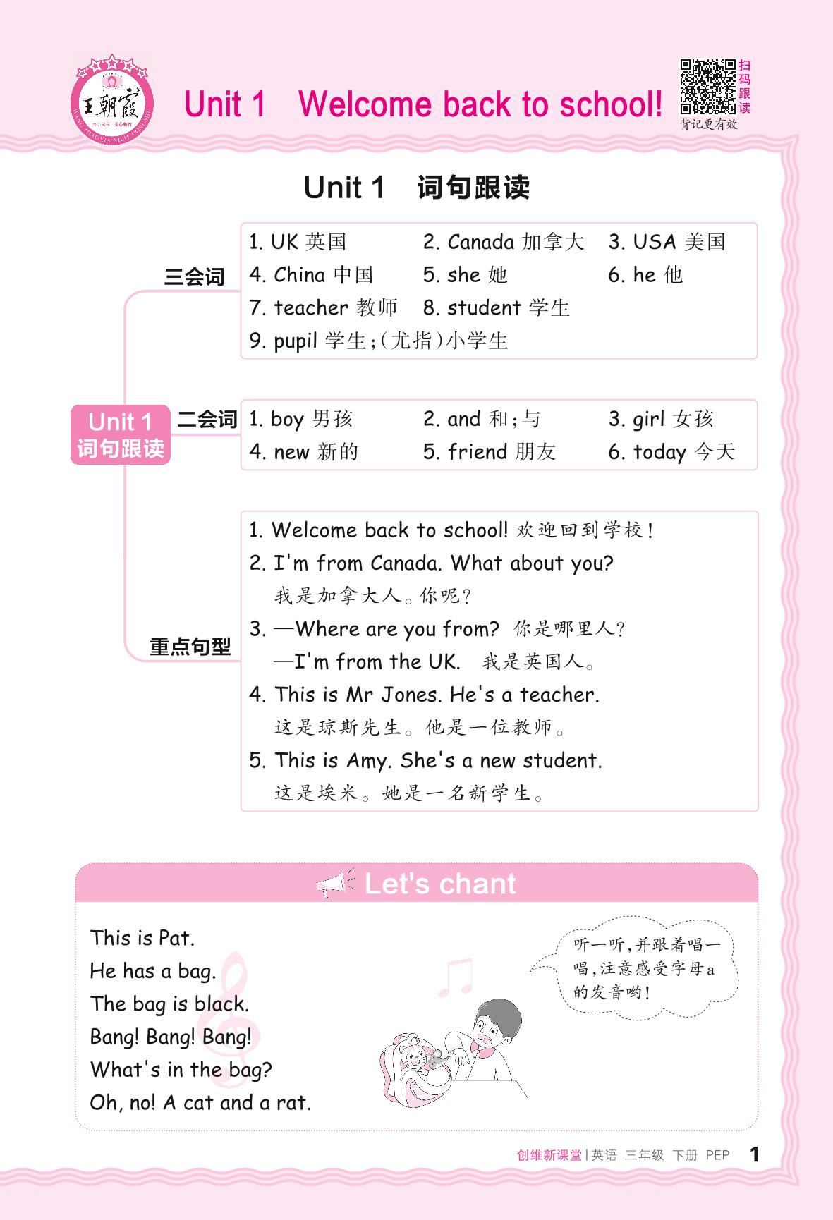 2024春下册三年级英语人教PEP版 Unit 1 词句跟读