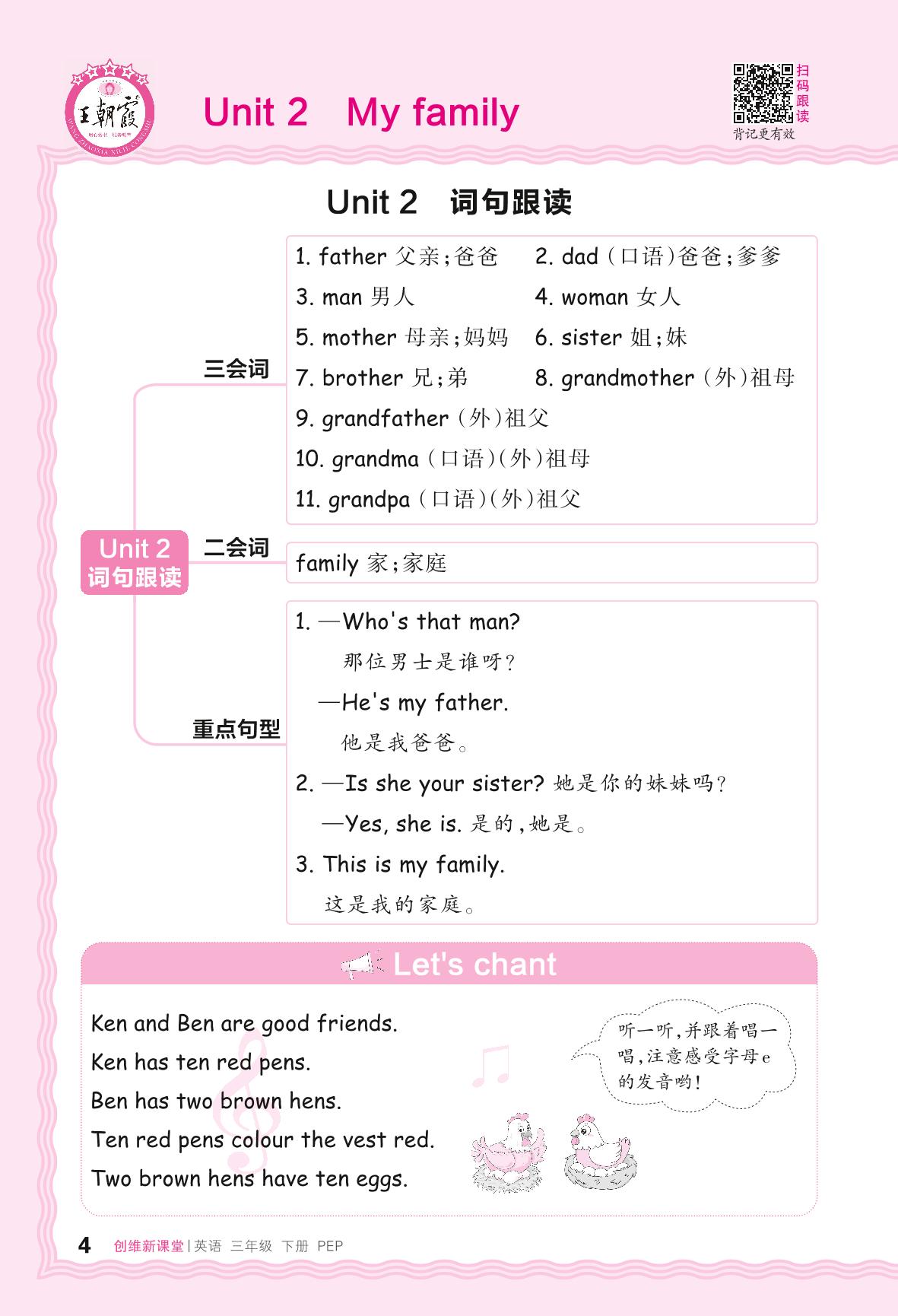 2024春下册三年级英语人教PEP版 Unit 2 词句跟读