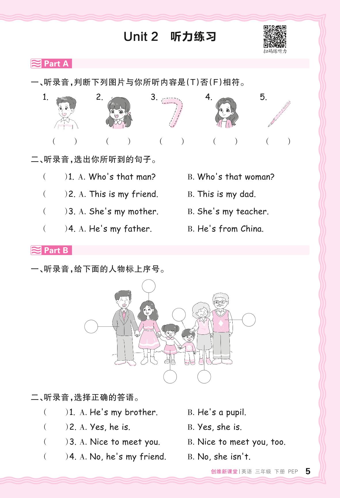 2024春下册三年级英语人教PEP版 Unit 2 听力练习