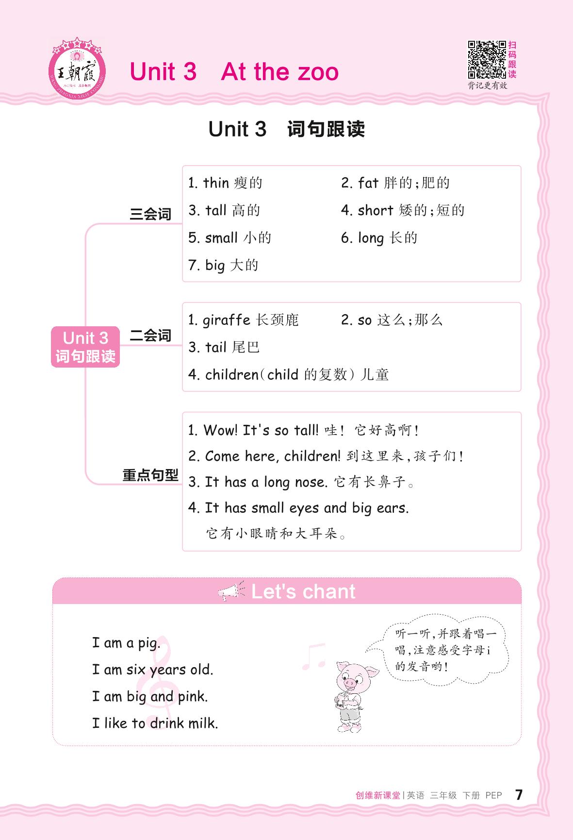 2024春下册三年级英语人教PEP版 Unit 3 词句跟读