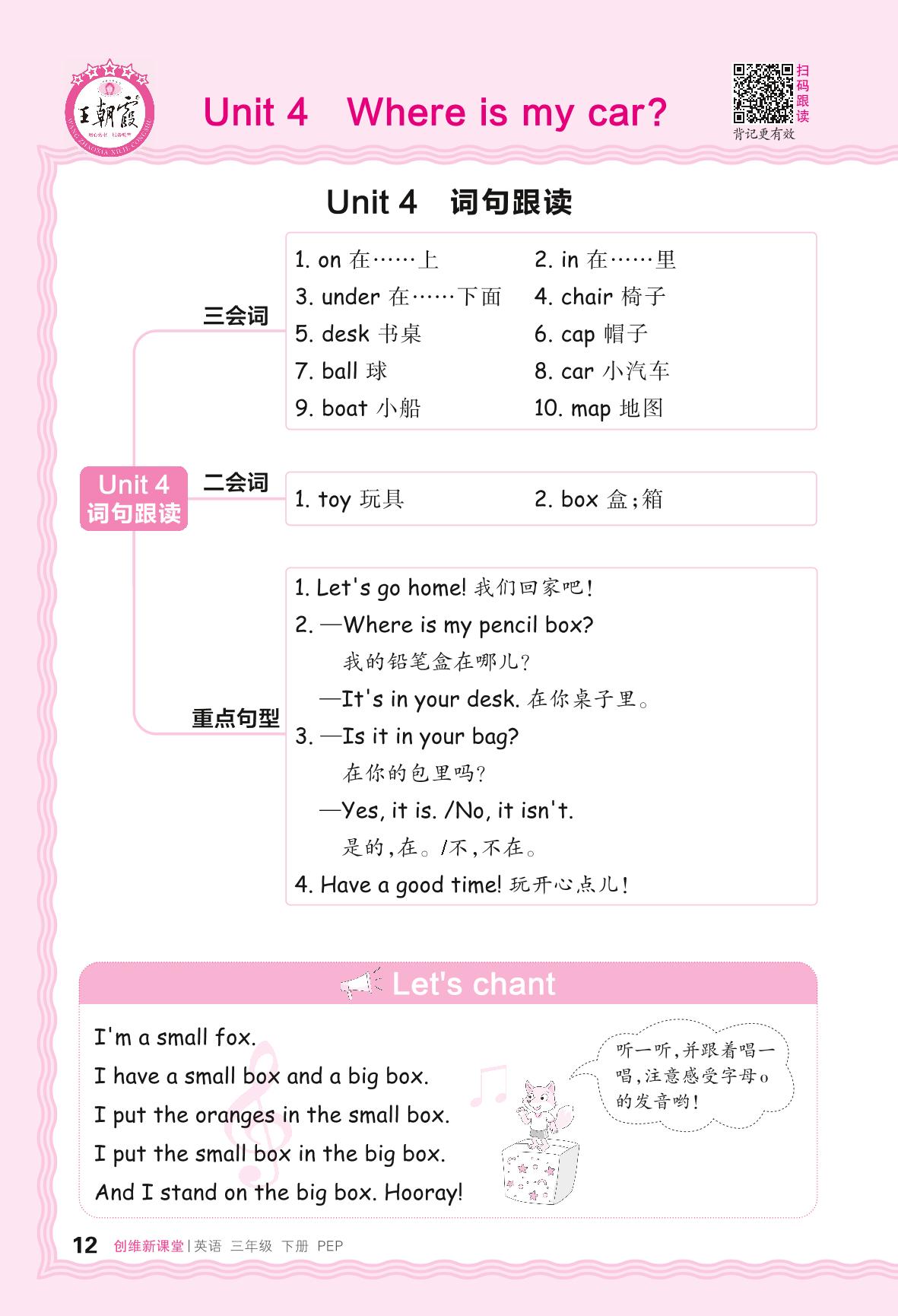 2024春下册三年级英语人教PEP版 Unit 4 词句跟读