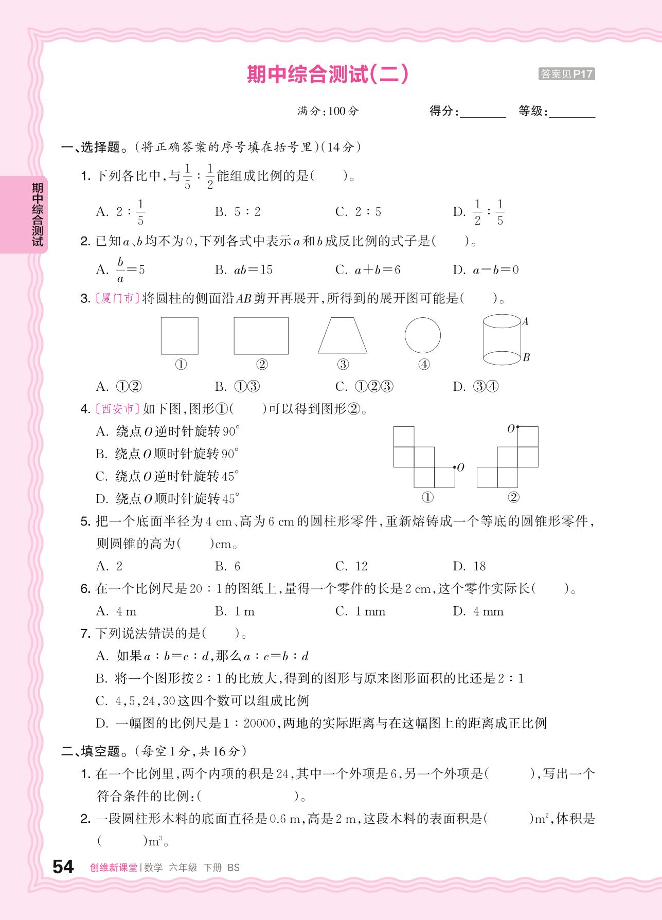 2024春下册六年级数学北师版 期中综合测试(二)