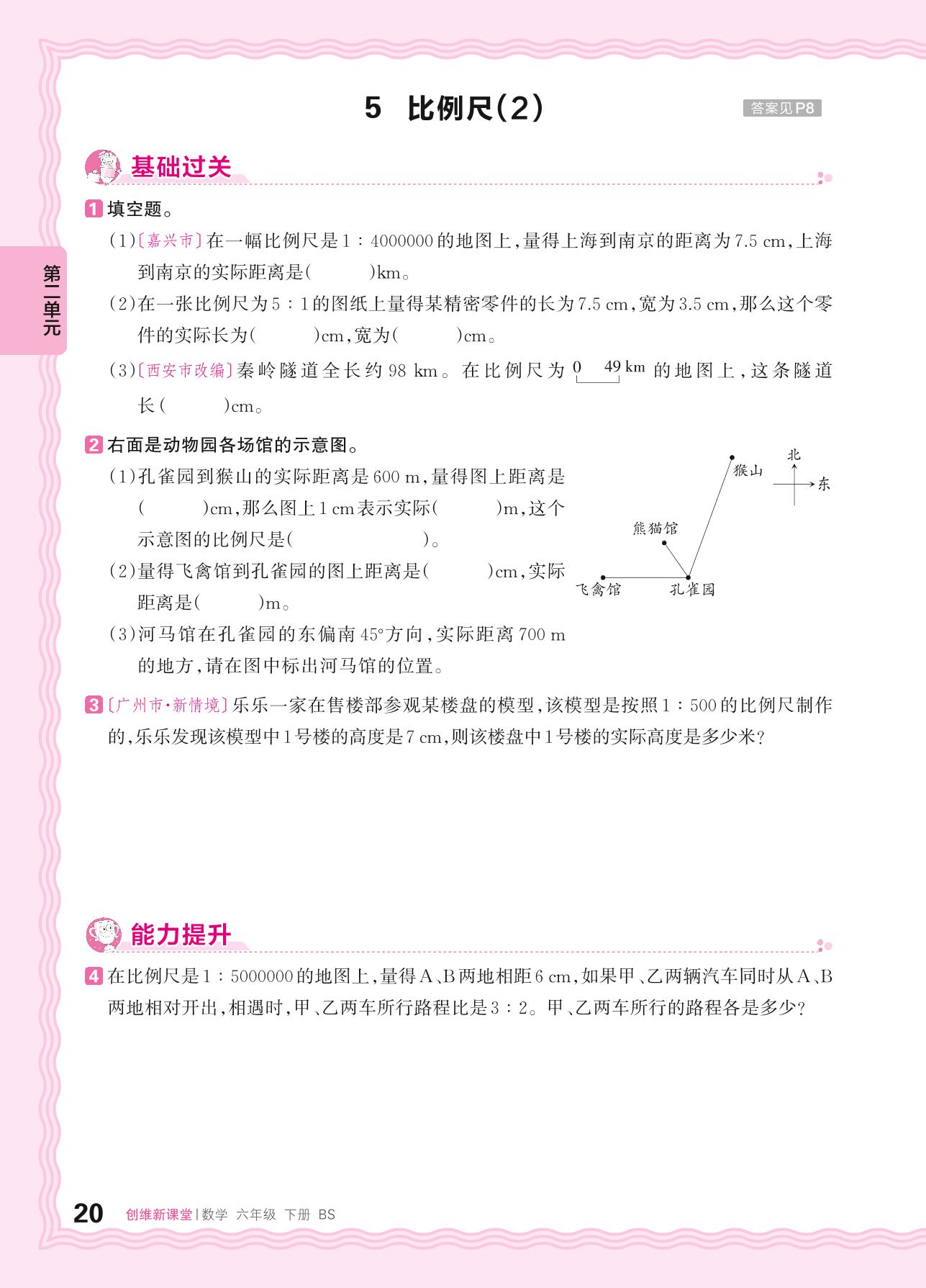 2024春下册六年级数学北师版 第二单元 比例——5. 比例尺(2)