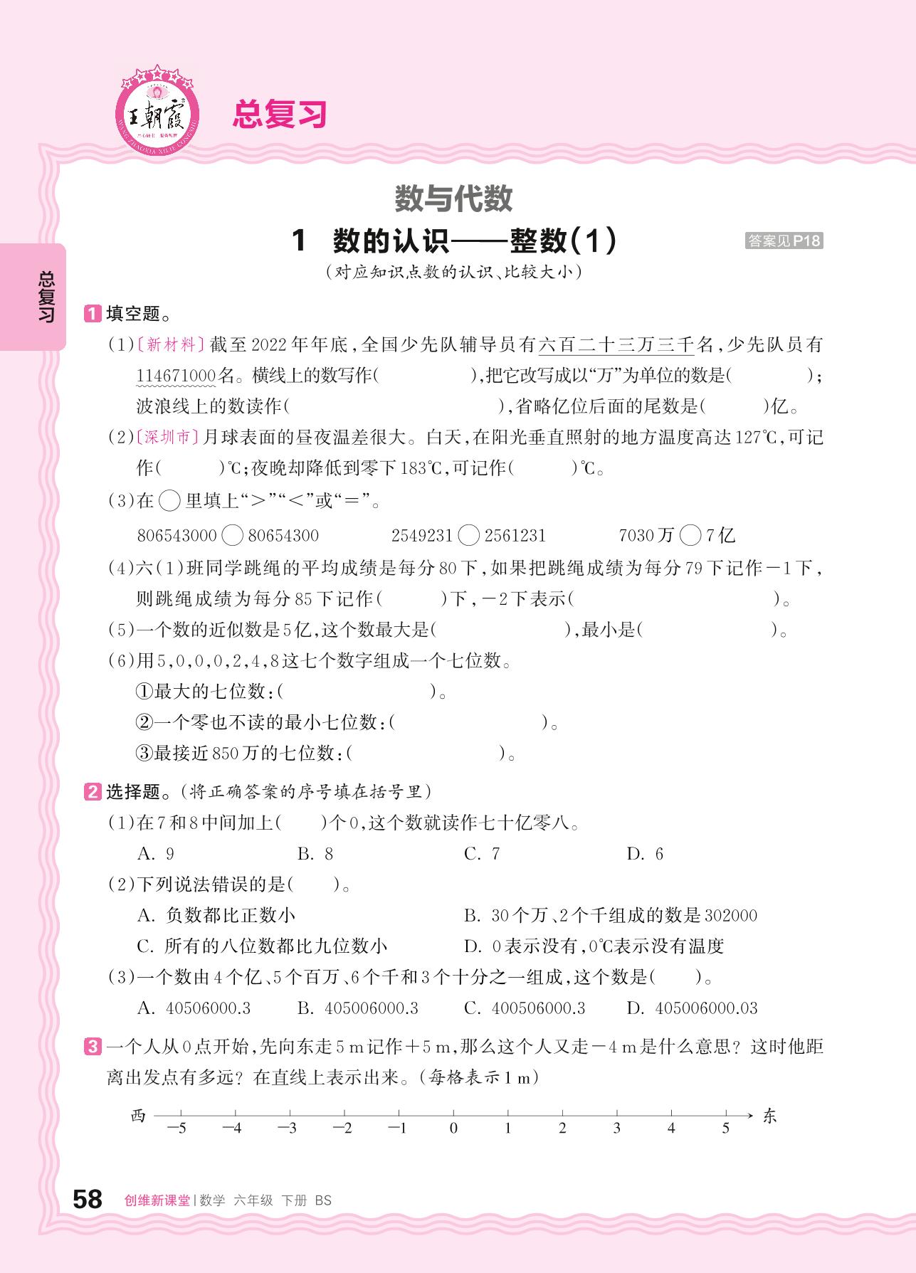2024春下册六年级数学北师版 总复习(数与代数)——1. 数的认识 整数(1)