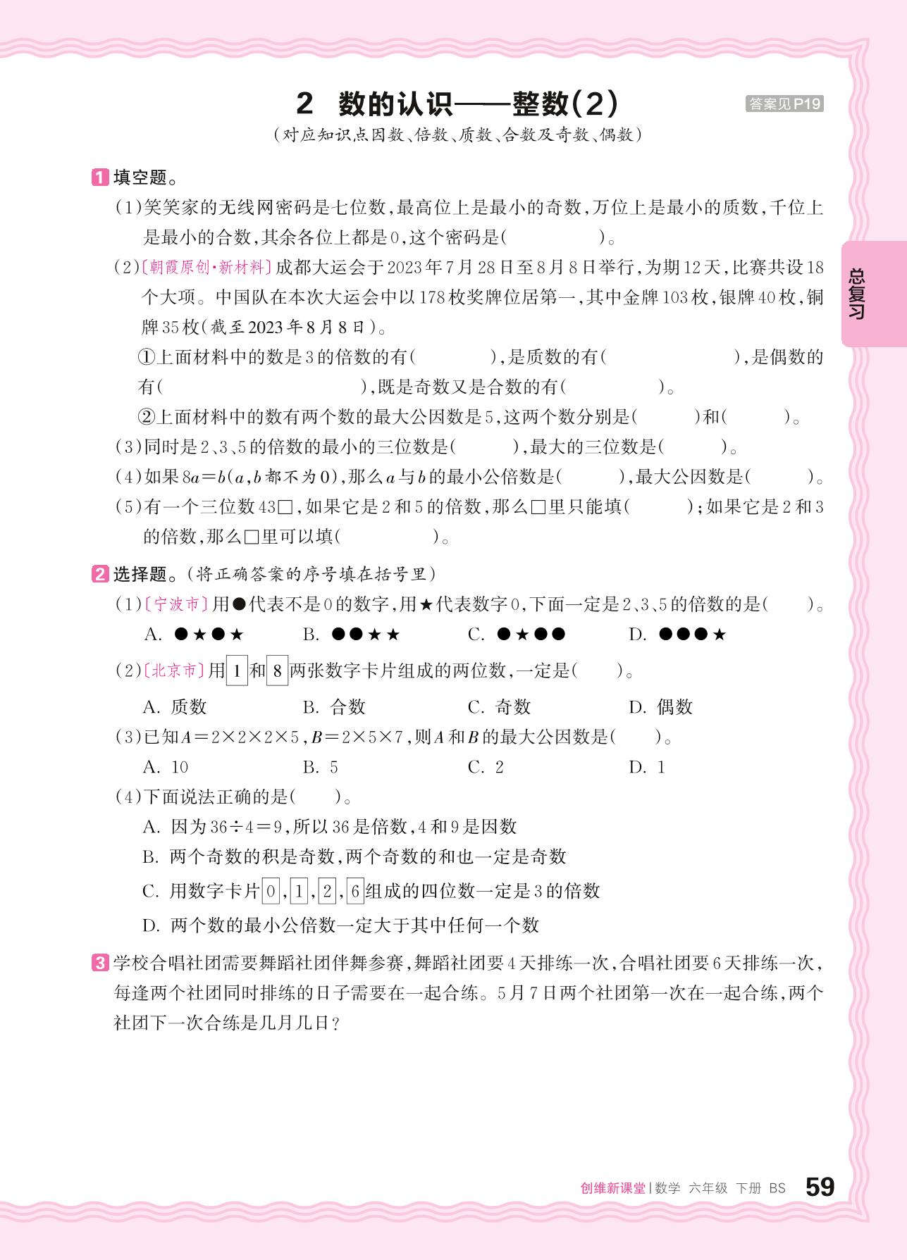 2024春下册六年级数学北师版 总复习(数与代数)——2. 数的认识 整数(2)