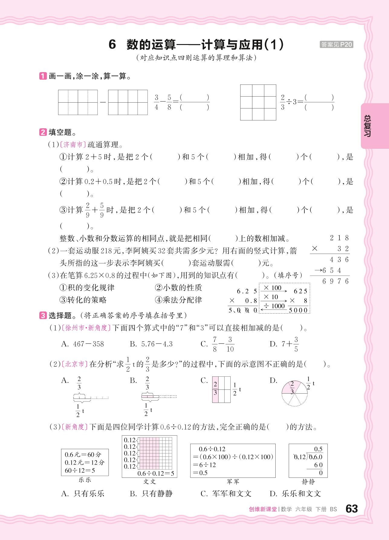 2024春下册六年级数学北师版 总复习(数与代数)——6. 数的运算 计算与应用(1)