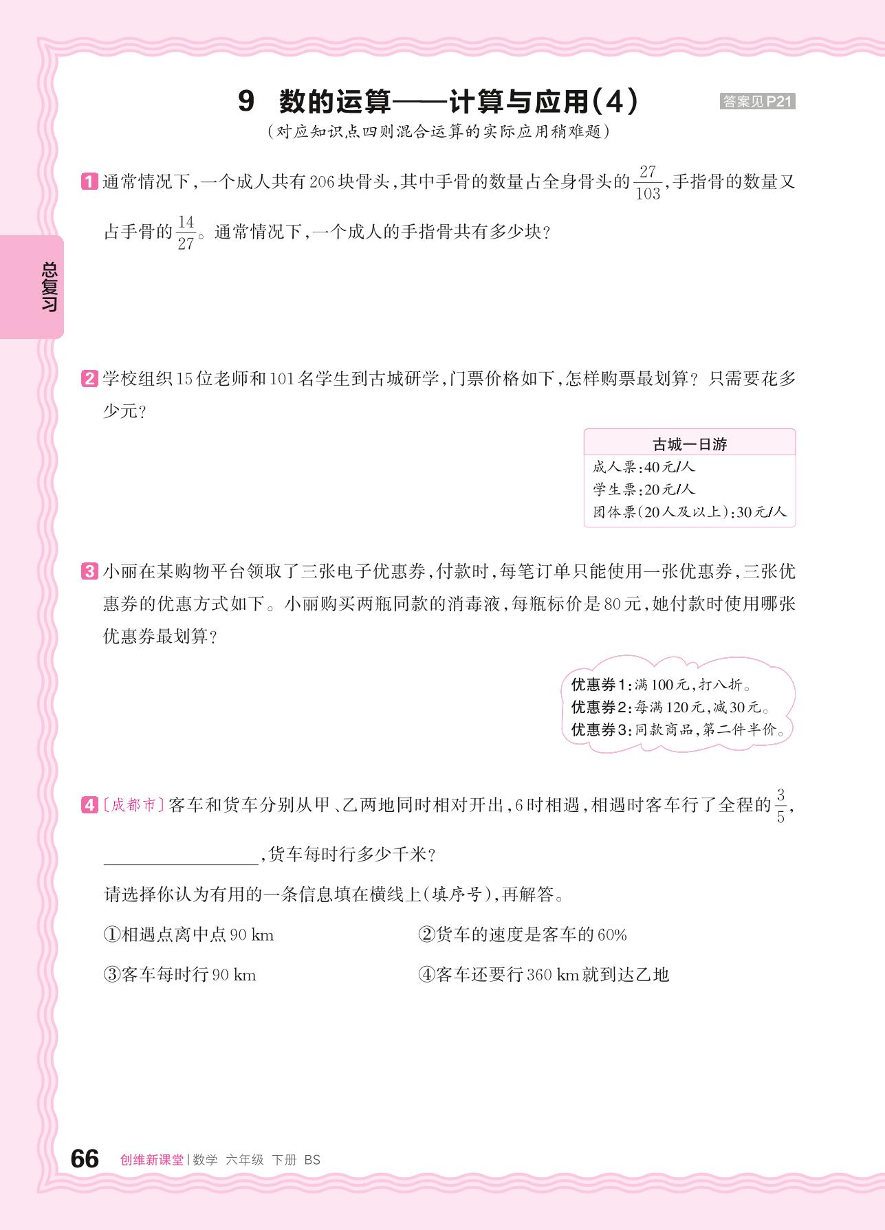 2024春下册六年级数学北师版 总复习(数与代数)——9. 数的运算 计算与应用(4)