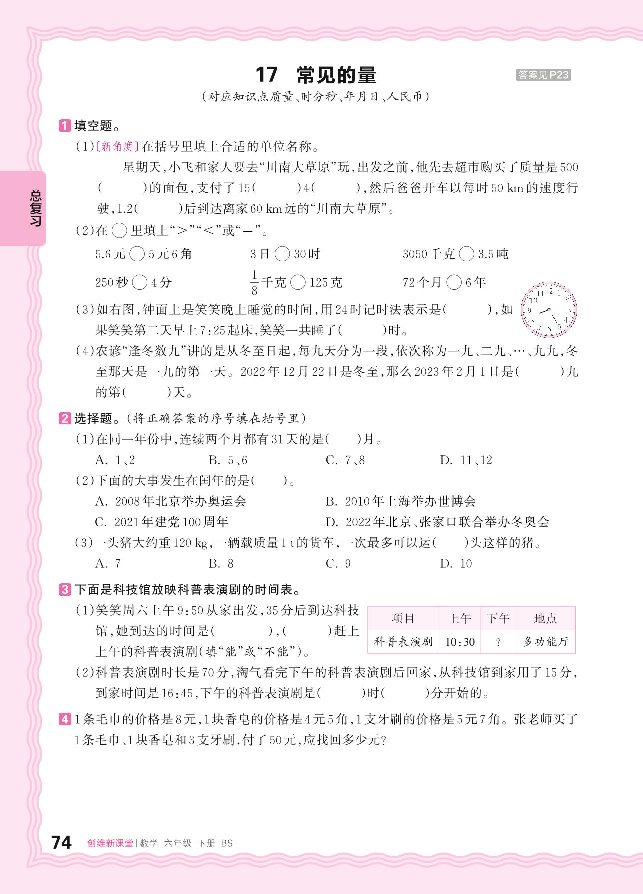2024春下册六年级数学北师版 总复习(数与代数)——17. 常见的量