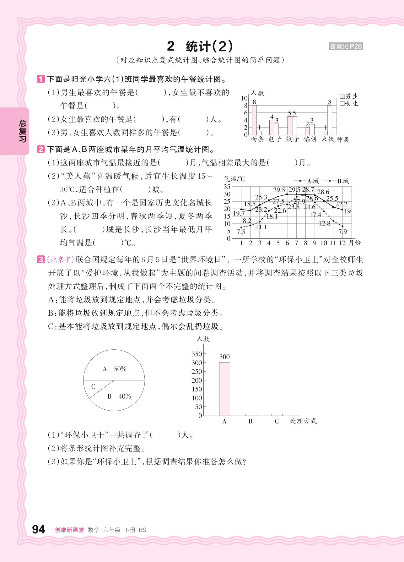 2024春下册六年级数学北师版 总复习(统计与概率)——2. 统计(2)