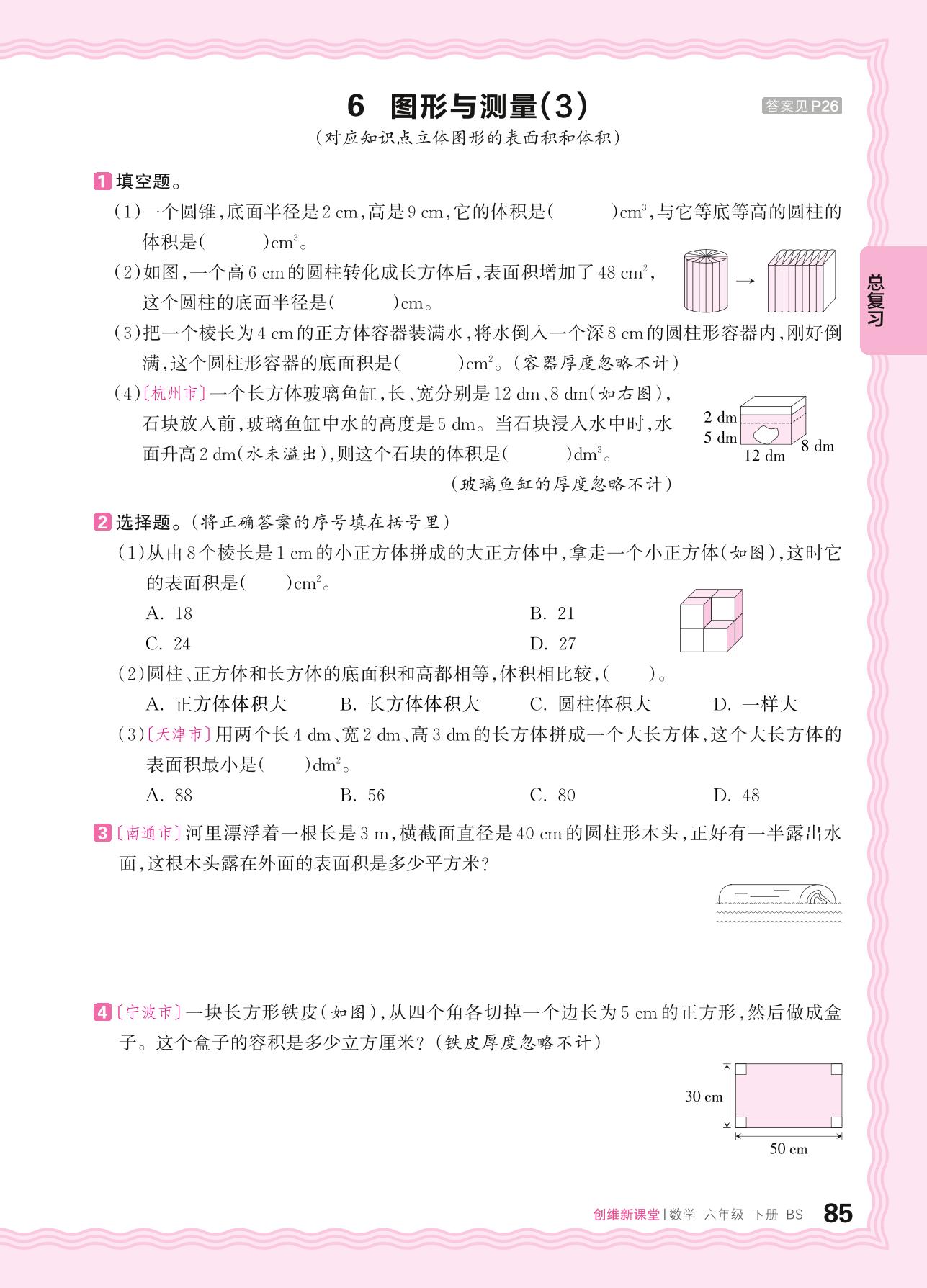2024春下册六年级数学北师版 总复习(图形与几何)——6. 图形与测量(3)