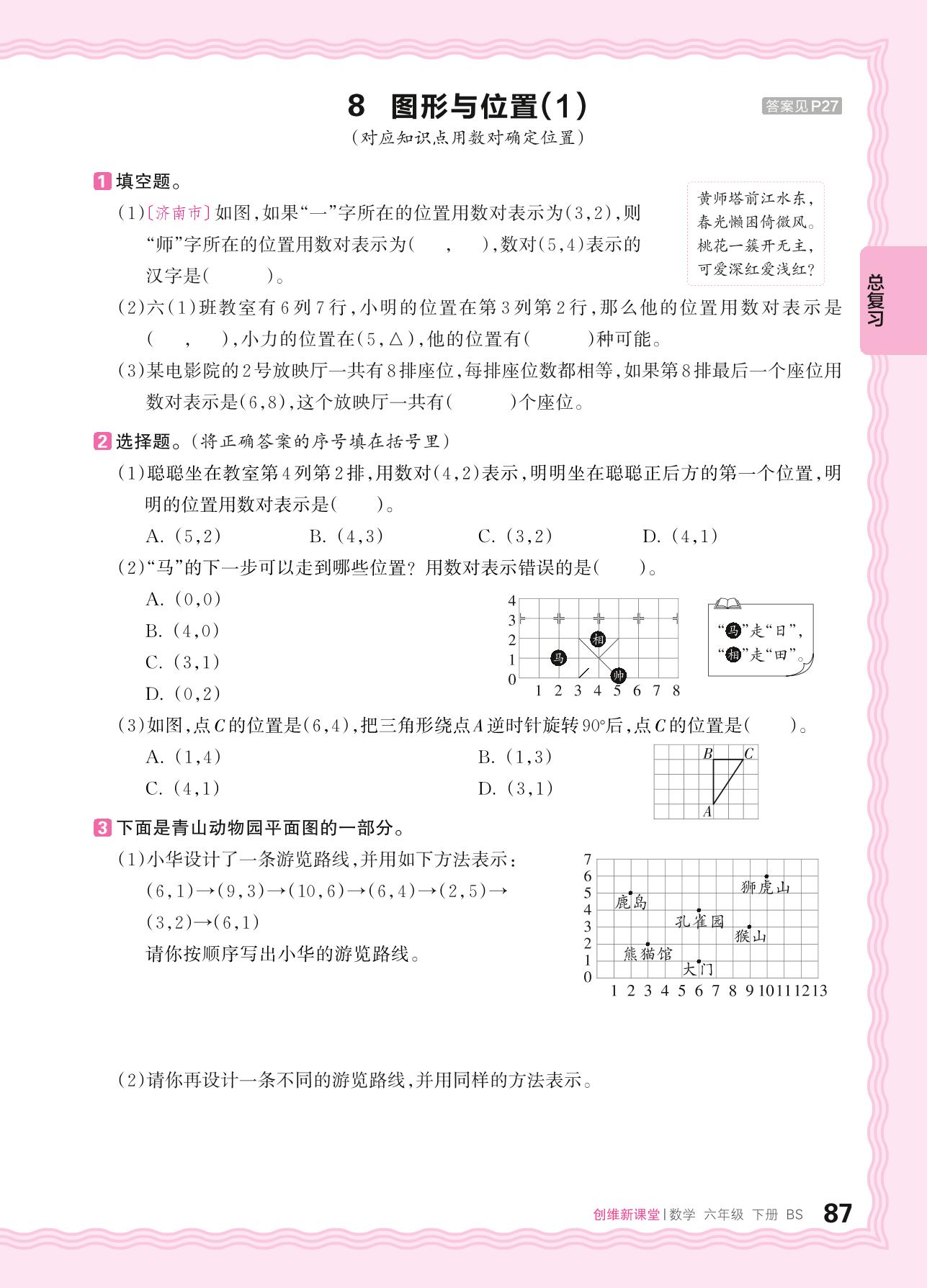 2024春下册六年级数学北师版 总复习(图形与几何)——8. 图形与位置(1)