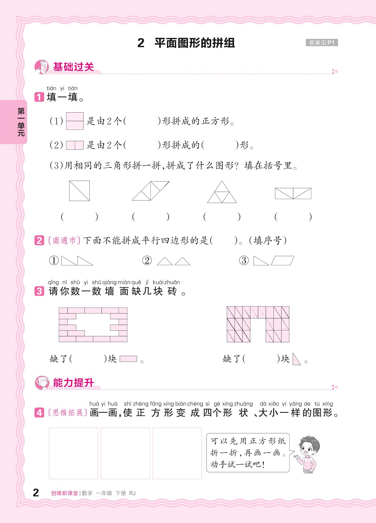 2024春下册一年级数学人教版 第一单元 认识图形(二)——2. 平面图形的拼组