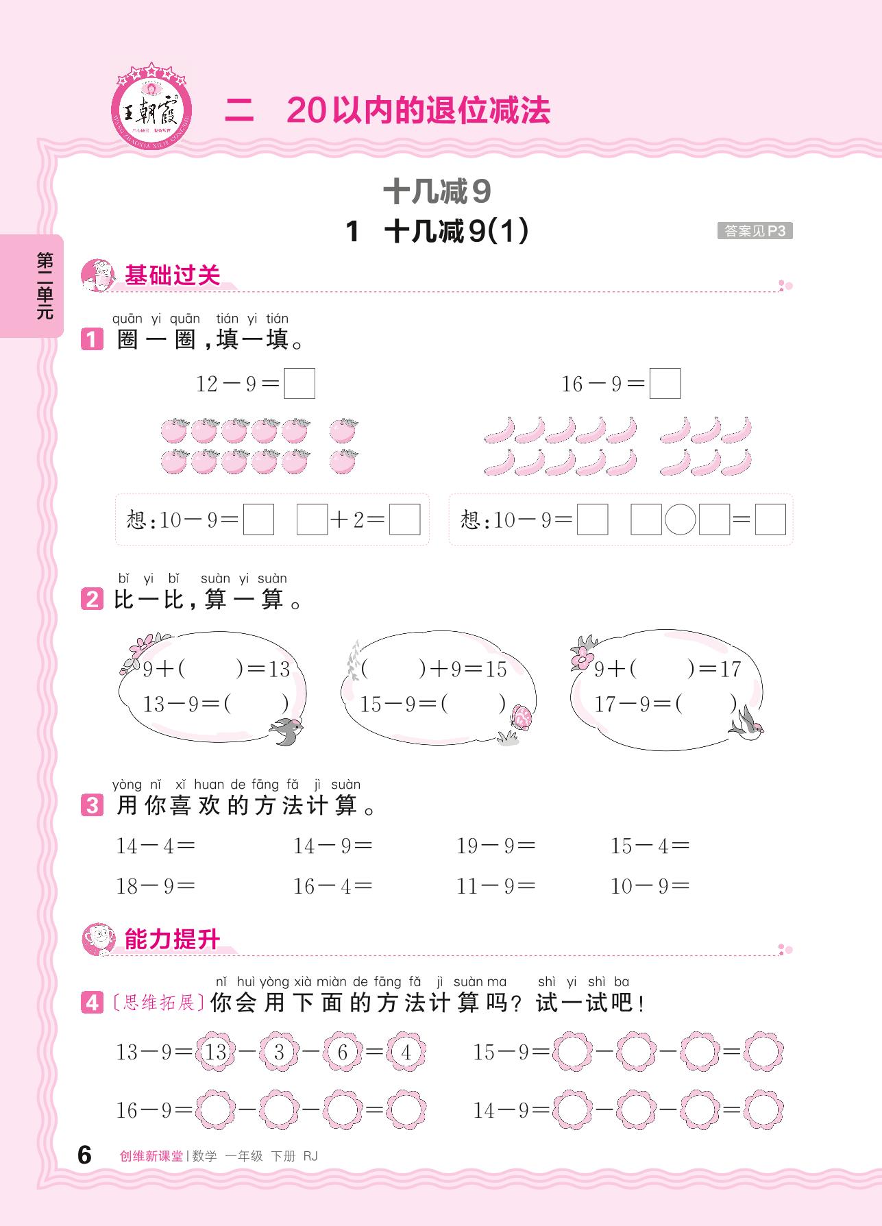 2024春下册一年级数学人教版 第二单元 20以内的退位减法——1. 十几减9(1)_R240123095704161