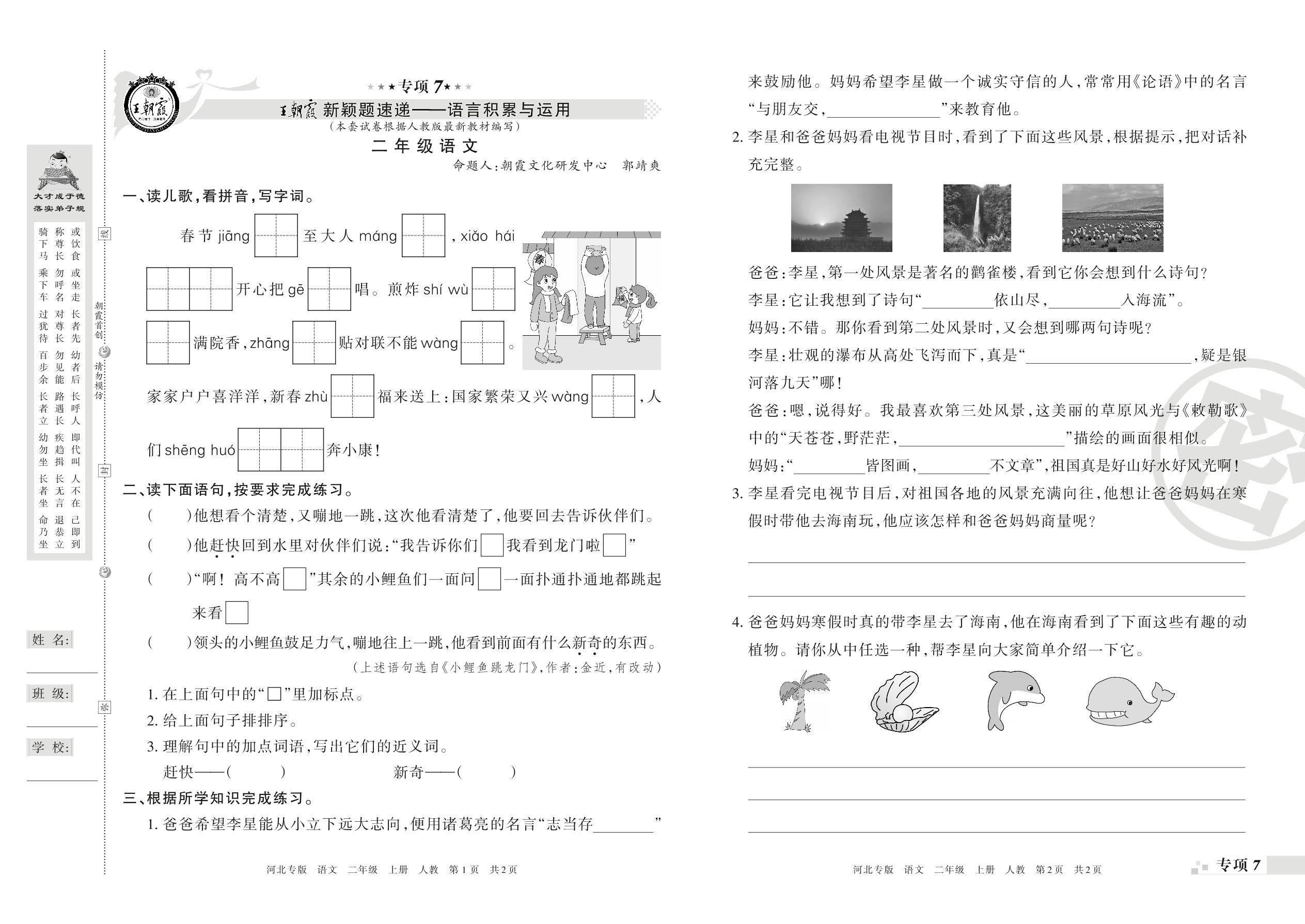 王朝霞期末专项卷——语言积累与运用、非连续性文本阅读二年级上册语文(人教版)_R21080164756【0】