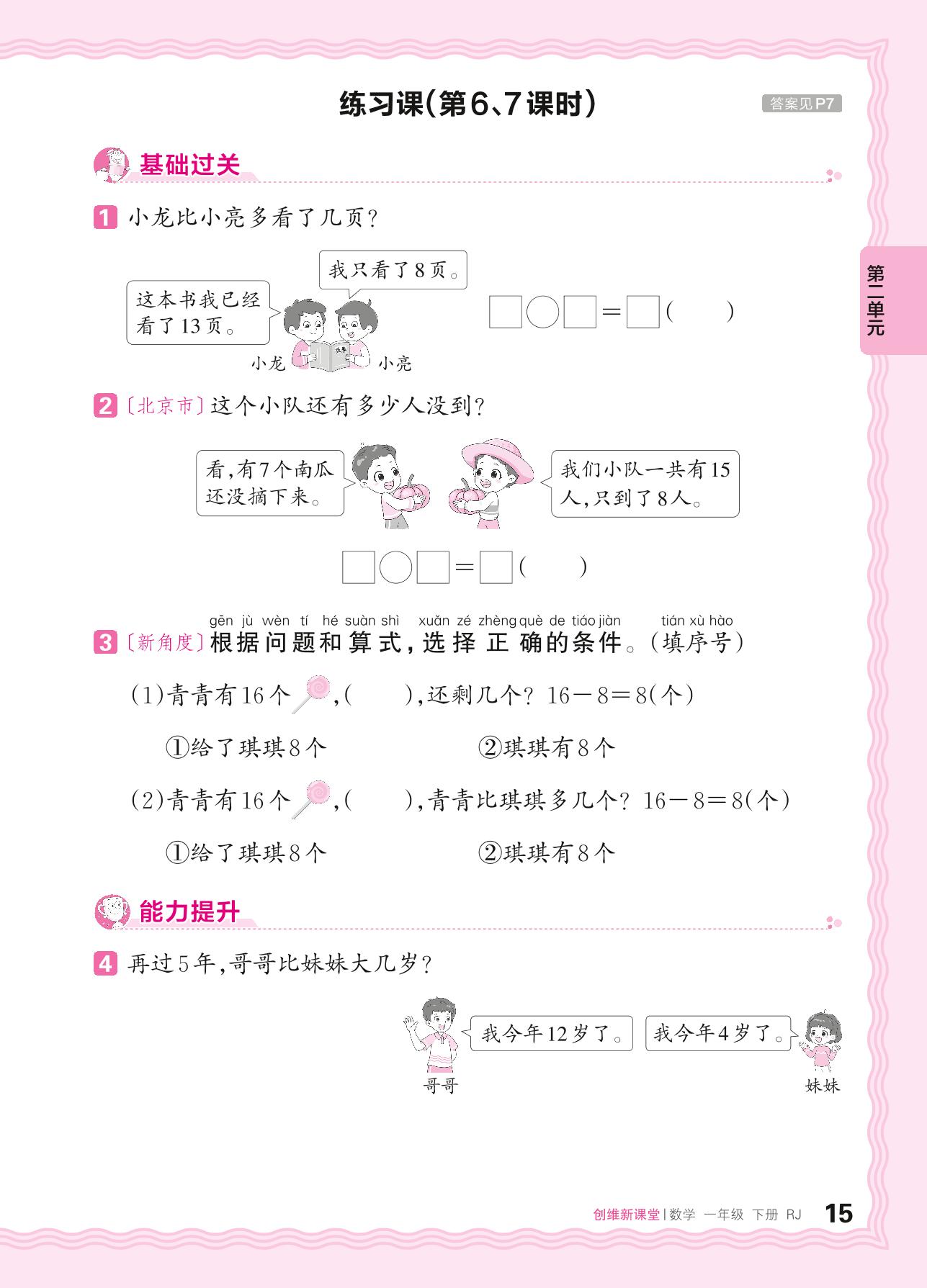 2024春下册一年级数学人教版 第二单元 20以内的退位减法——解决问题练习课
