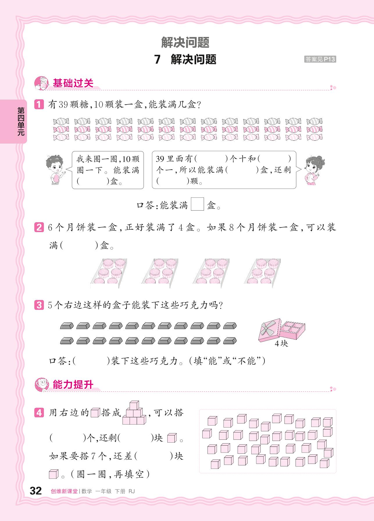 2024春下册一年级数学人教版 第四单元 100以内数的认识——7. 解决问题