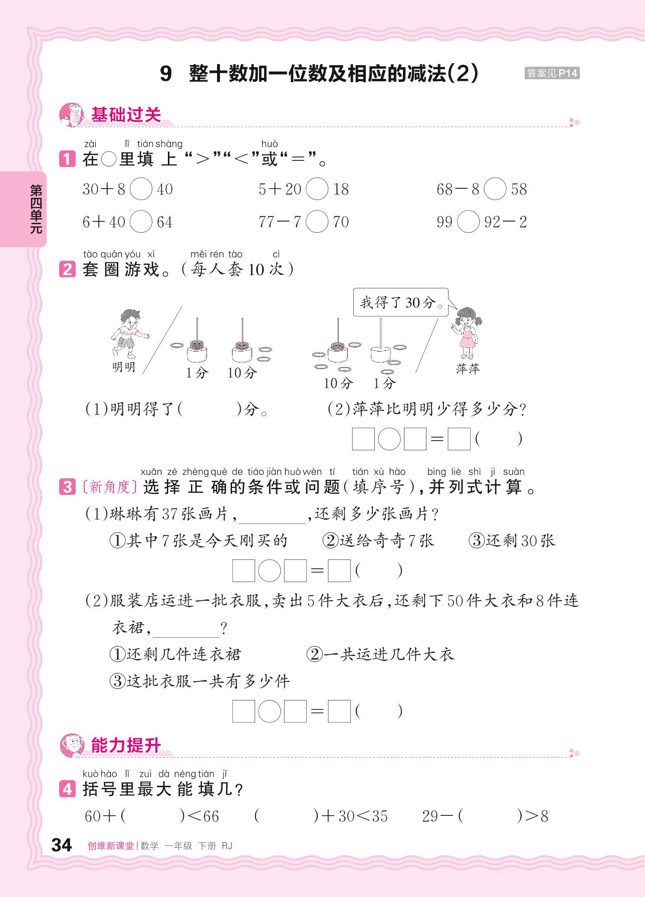 2024春下册一年级数学人教版 第四单元 100以内数的认识——9. 整十数加一位数及相应的减法(2)
