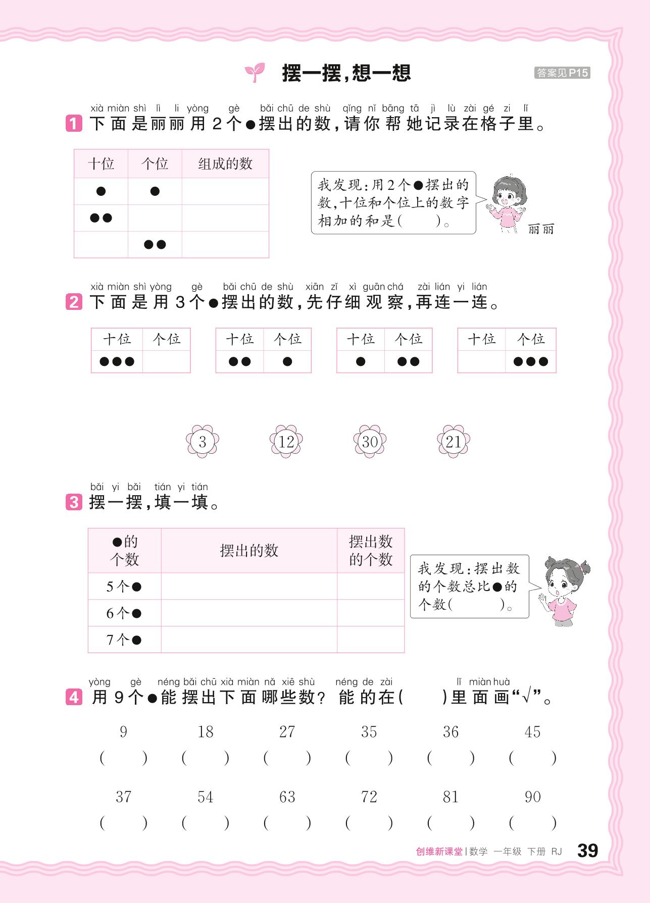 2024春下册一年级数学人教版 第四单元 100以内数的认识——摆一摆,想一想