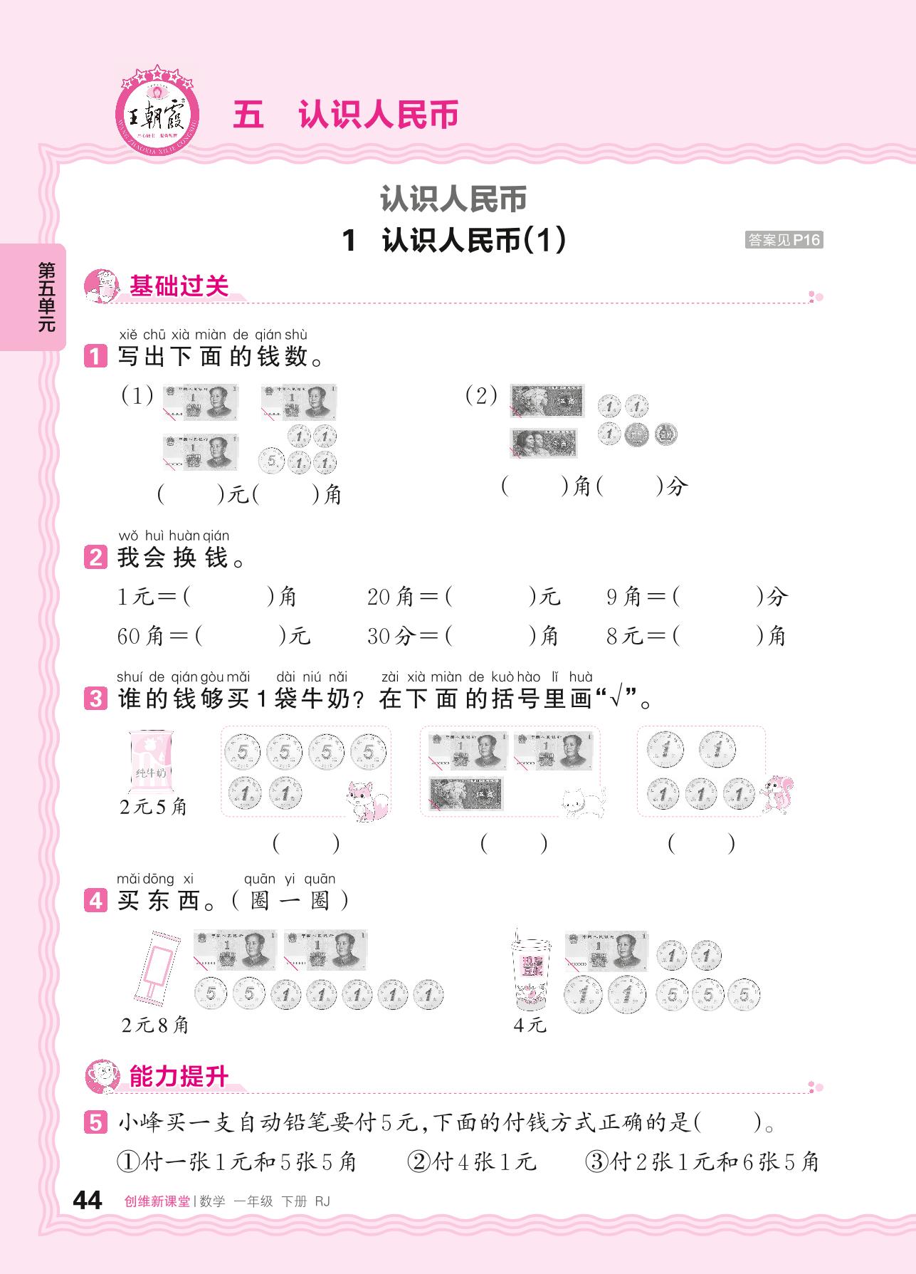 2024春下册一年级数学人教版 第五单元 认识人民币——1. 认识人民币(1)_R240123095717482
