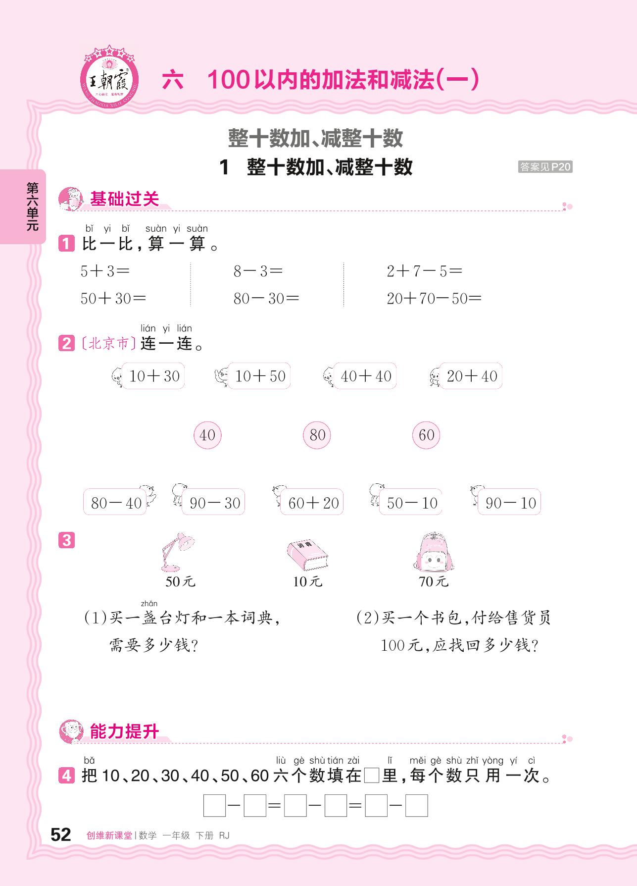 2024春下册一年级数学人教版 第六单元 100以内的加法和减法(一)——1. 整十数加、减整十数_R240123095718476