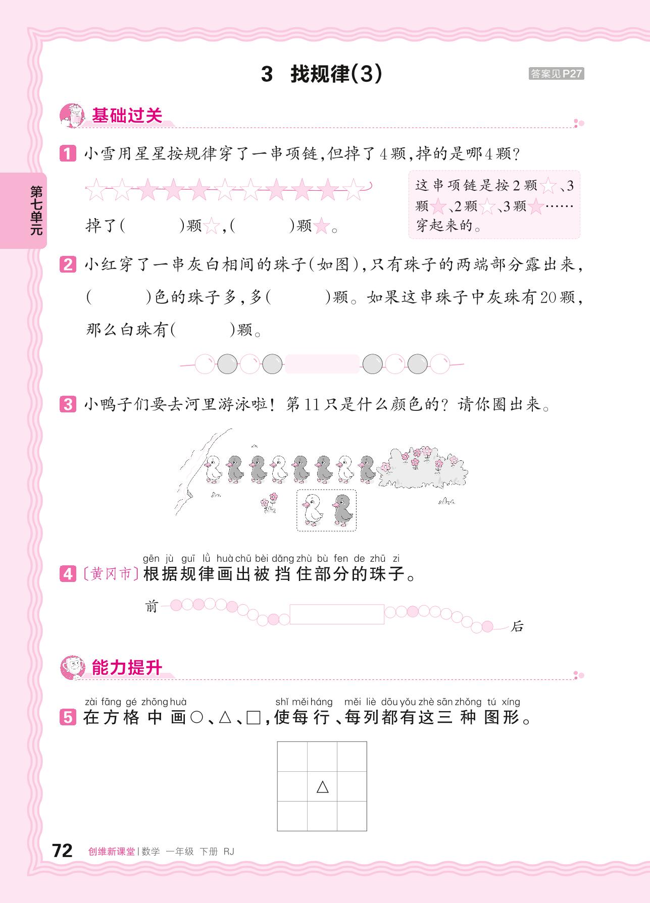 2024春下册一年级数学人教版 第七单元 找规律——3. 找规律(3)_R240123095539356