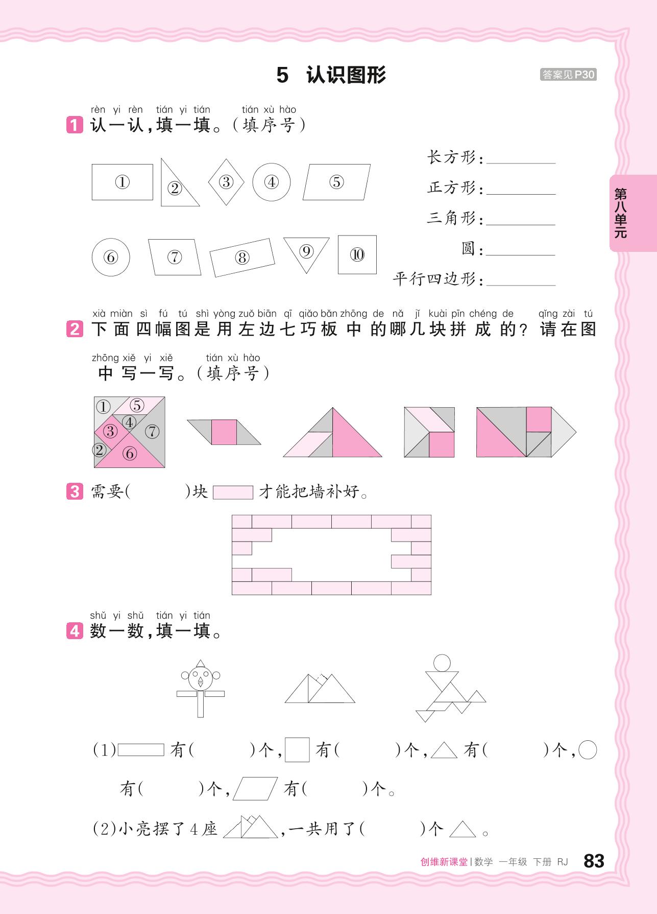 2024春下册一年级数学人教版 第八单元 总复习——5. 认识图形