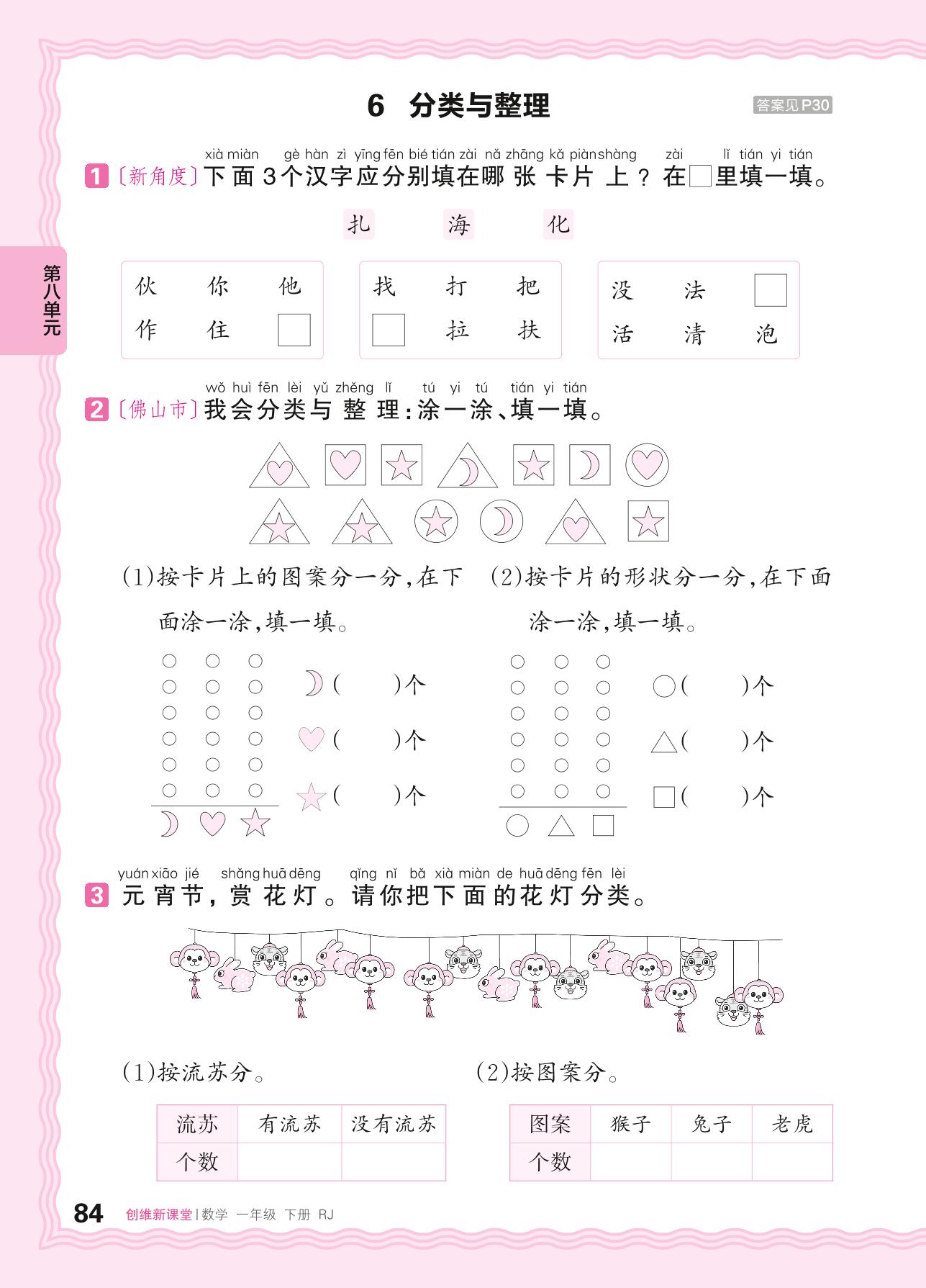 2024春下册一年级数学人教版 第八单元 总复习——6. 分类与整理
