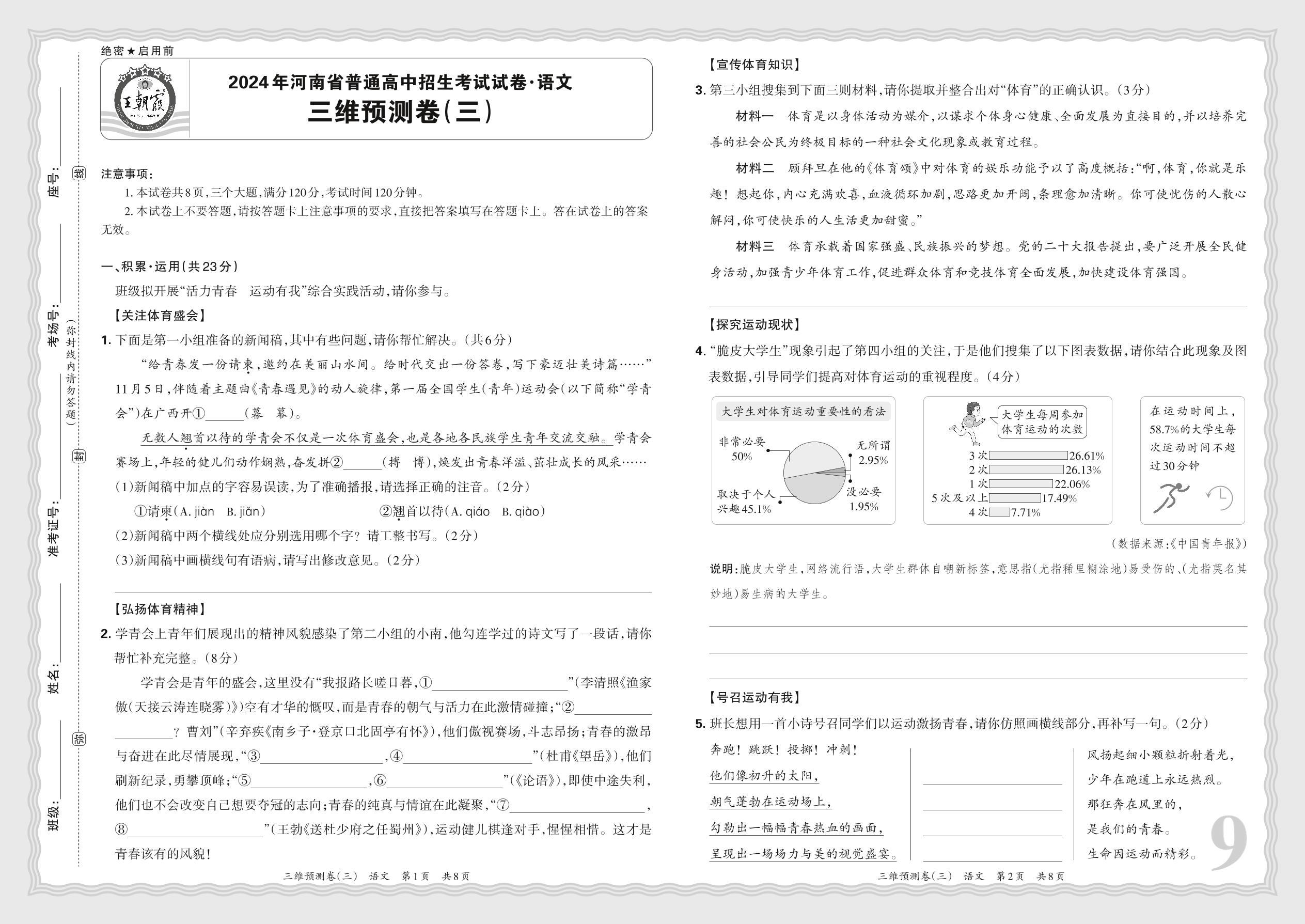 2024年河南省普通高中招生考试试卷·语文 三维预测卷(三)