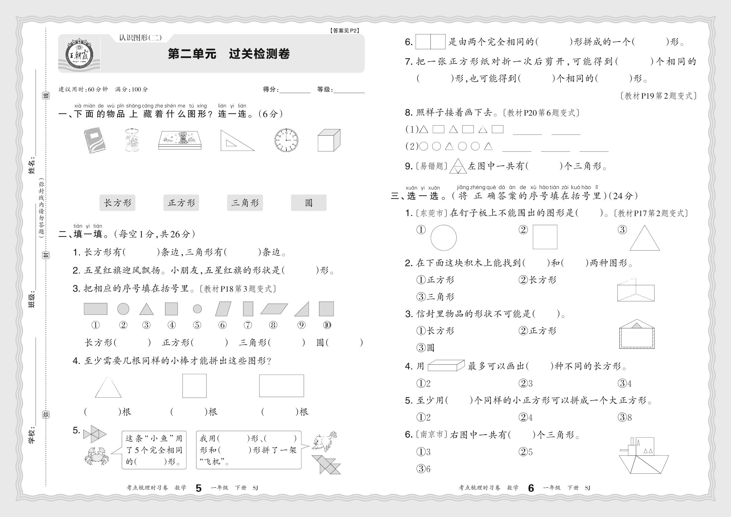 2024春下册一年级数学苏教版 第二单元 过关检测卷