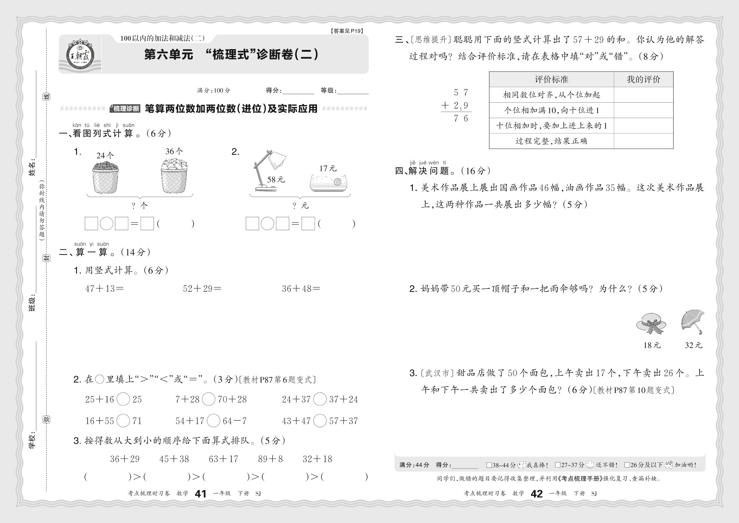 2024春下册一年级数学苏教版 第六单元 “梳理式“诊断卷(二)