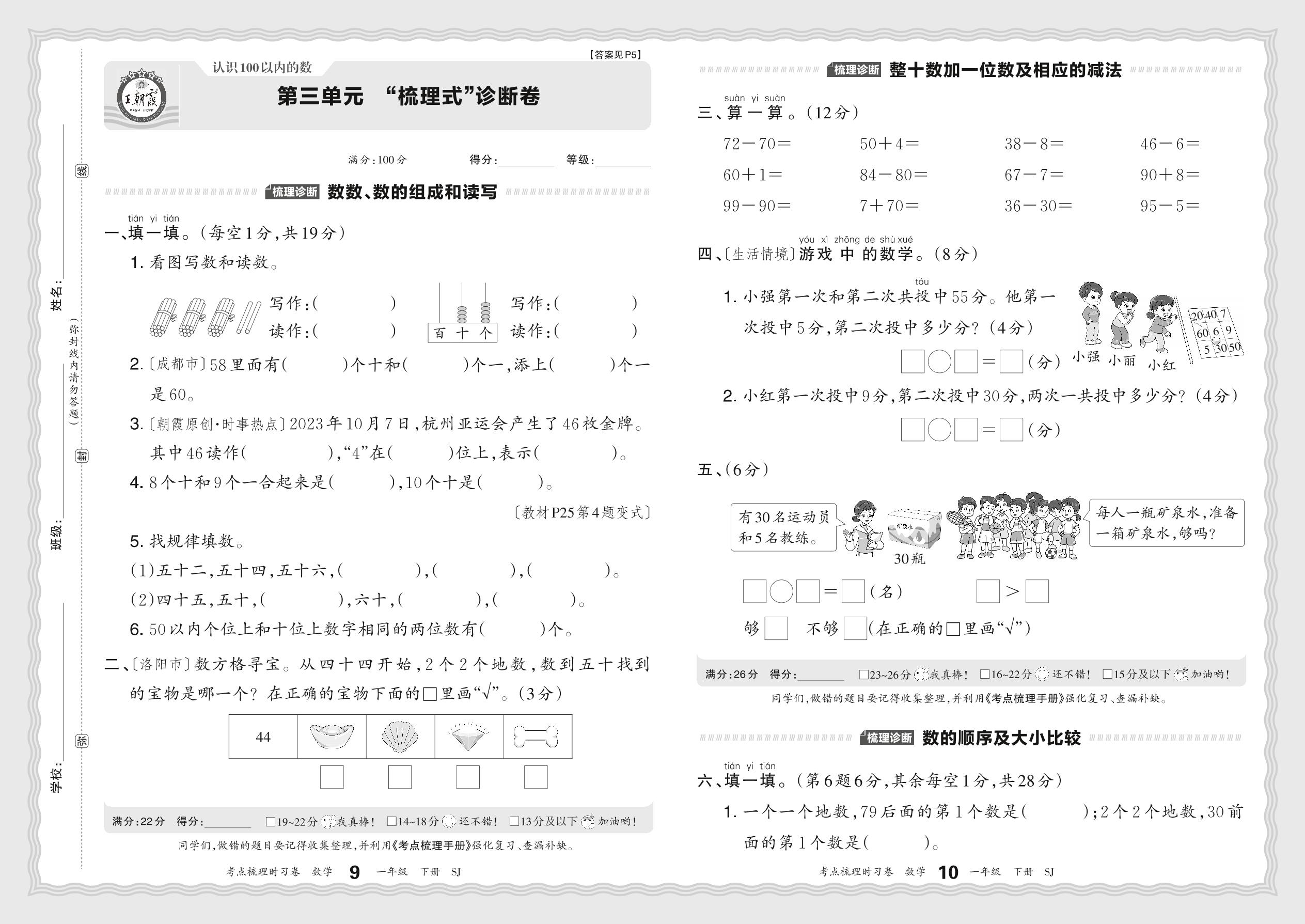 2024春下册一年级数学苏教版 第三单元 “梳理式“诊断卷