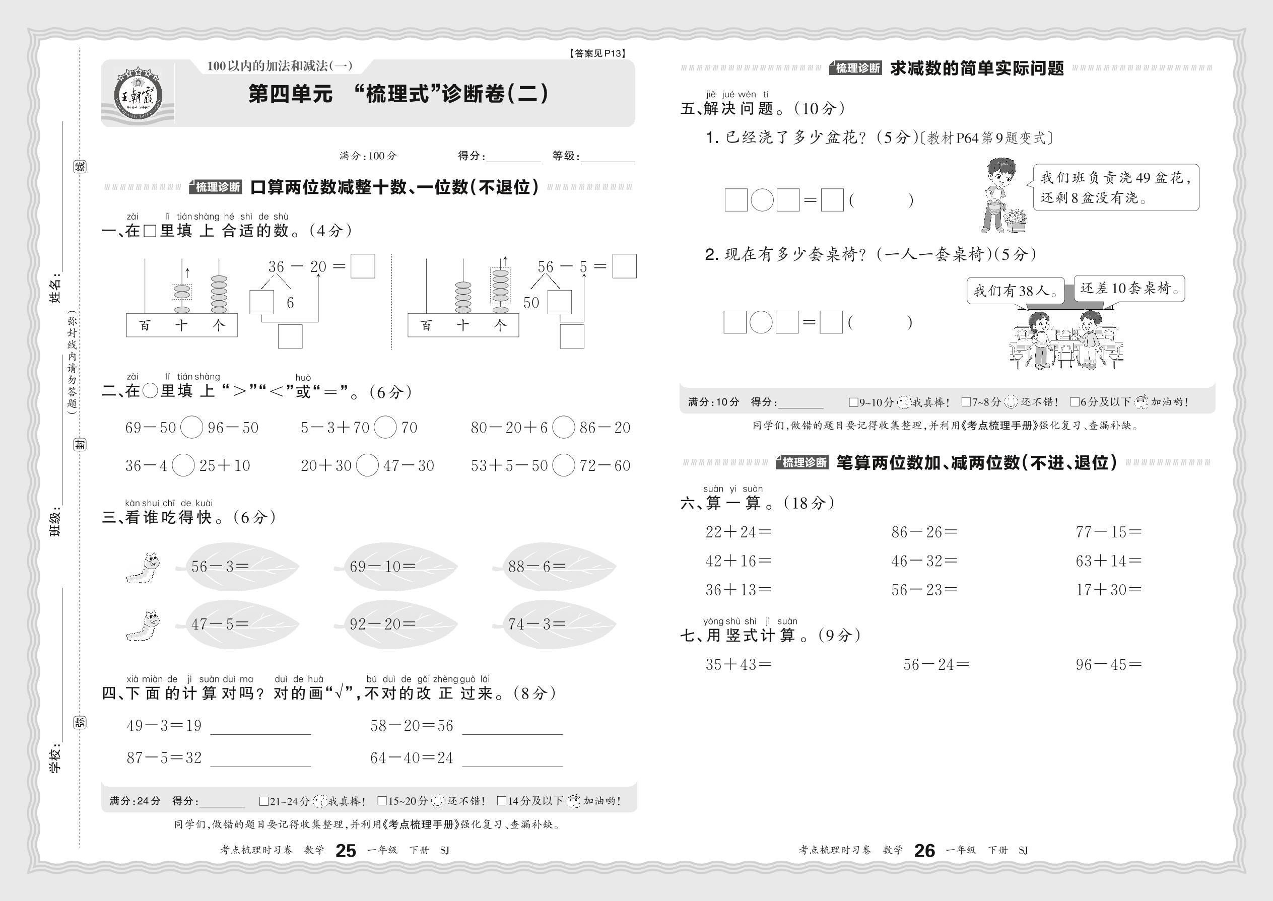2024春下册一年级数学苏教版 第四单元 “梳理式“诊断卷(二)