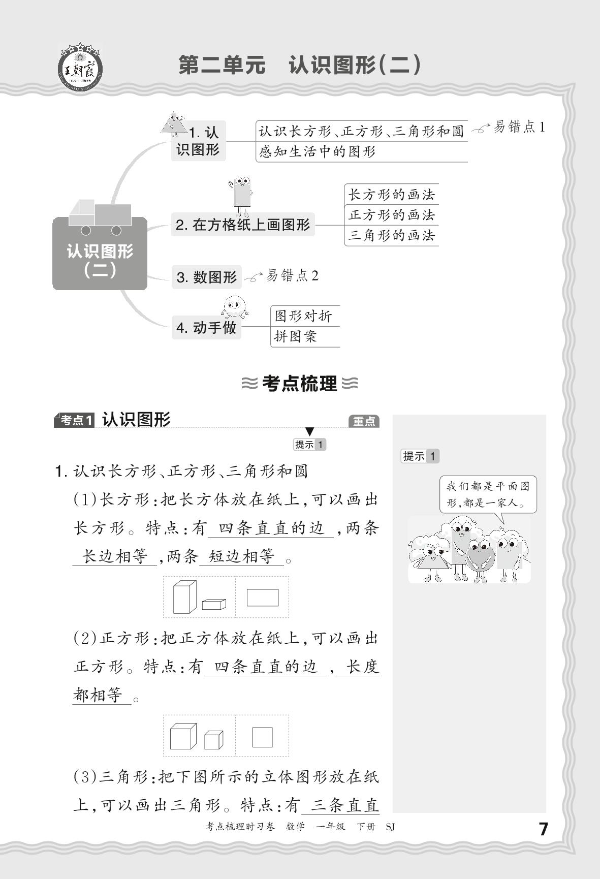 2024春下册一年级数学苏教版 考点梳理手册——第二单元 认识图形(二)