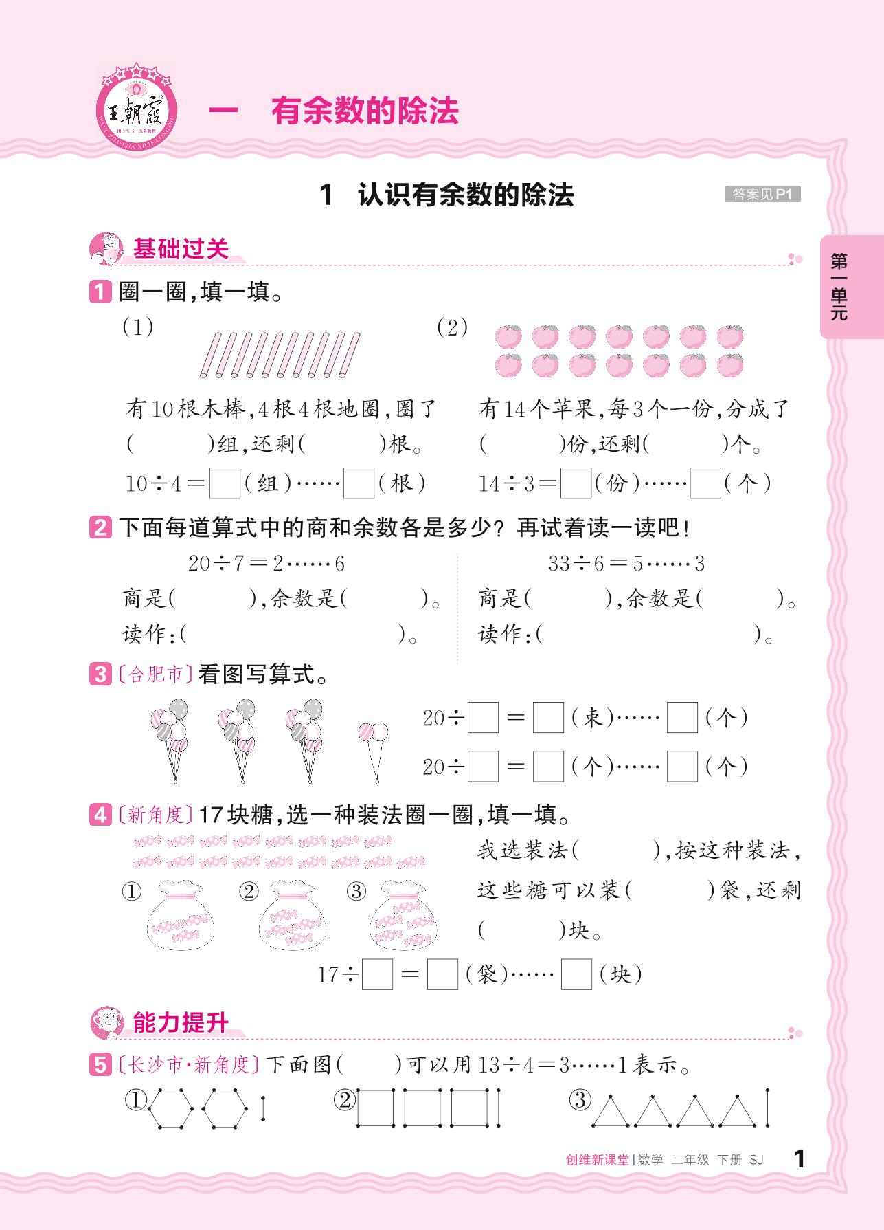 2024春下册二年级数学苏教版 第一单元 有余数的除法——1. 认识有余数的除法