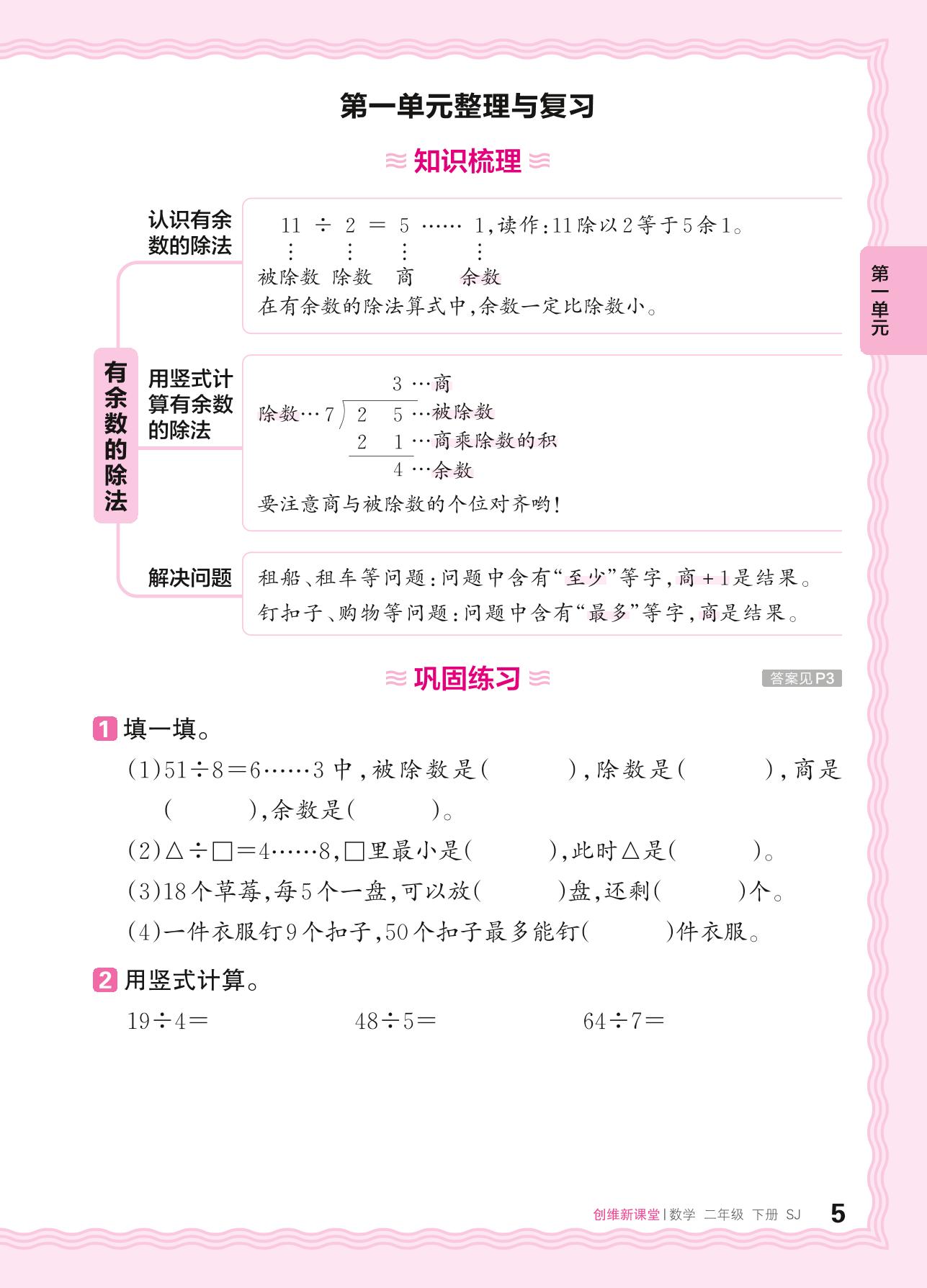 2024春下册二年级数学苏教版 第一单元整理与复习