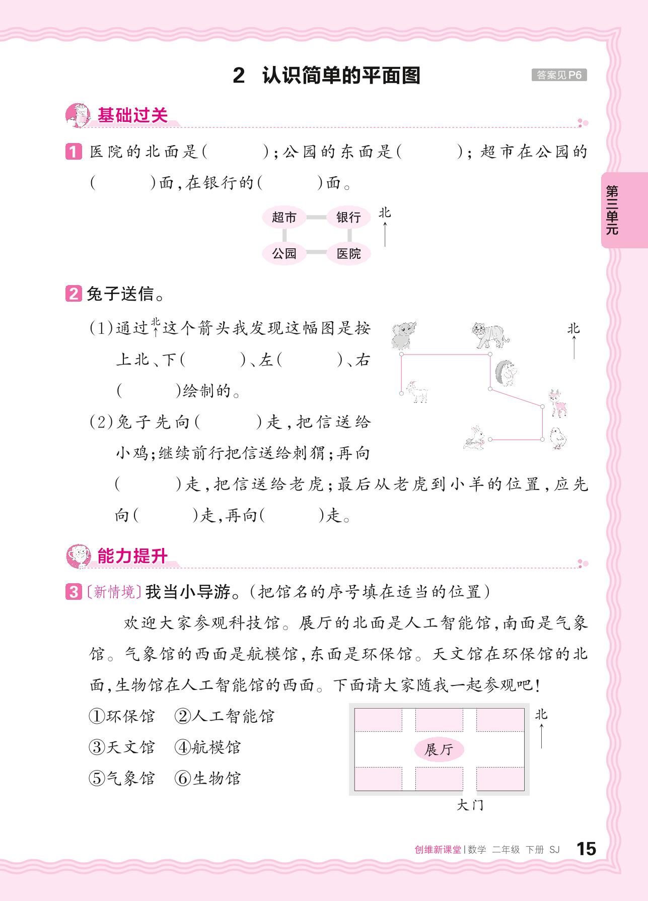 2024春下册二年级数学苏教版 第三单元 认识方向——2. 认识简单的平面图