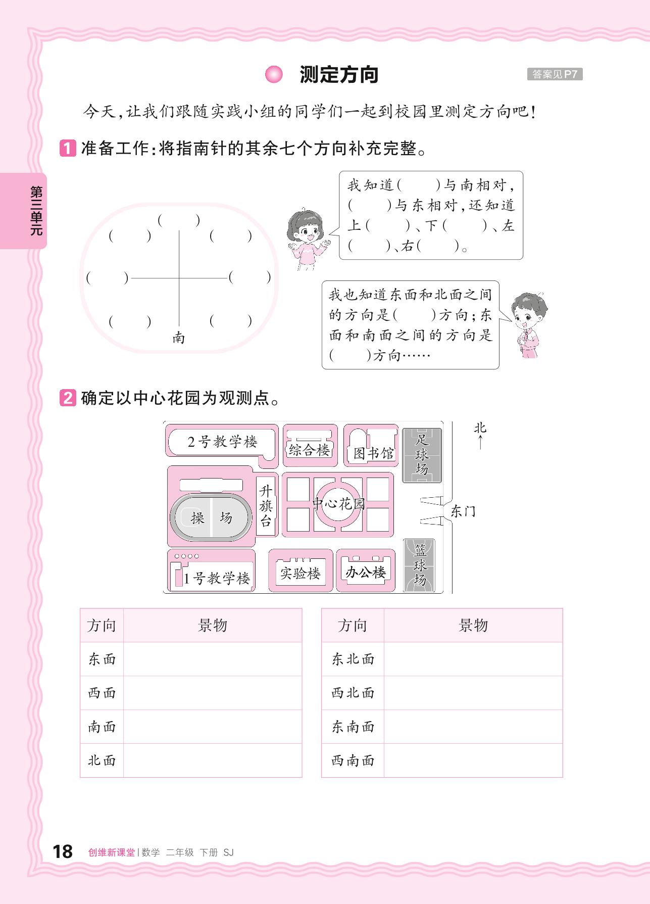 2024春下册二年级数学苏教版 第三单元 认识方向——测定方向