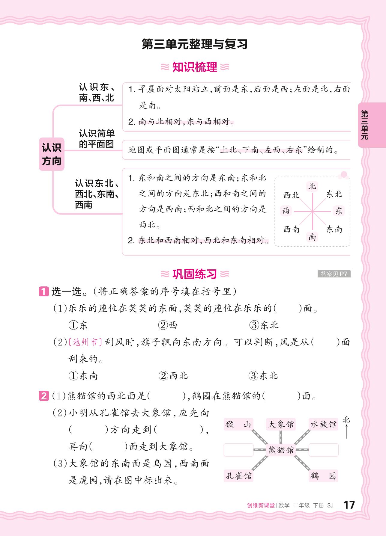 2024春下册二年级数学苏教版 第三单元整理与复习