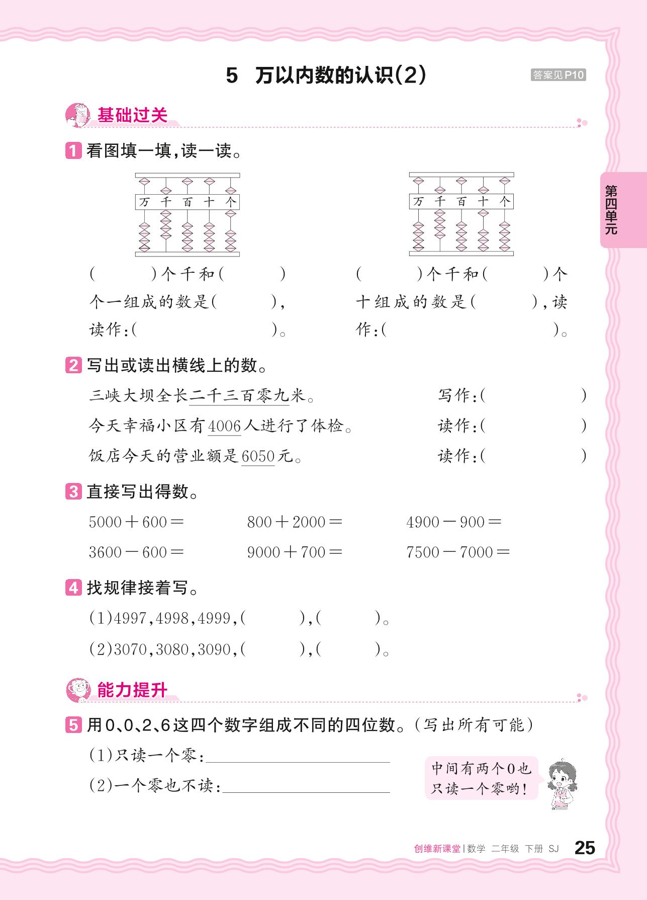 2024春下册二年级数学苏教版 第四单元 认识万以内的数——5. 万以内数的认识(2)