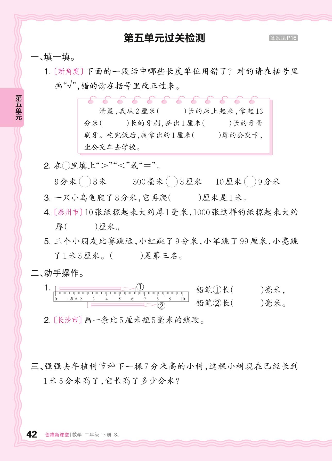 二年级数学苏教版下册单元卷